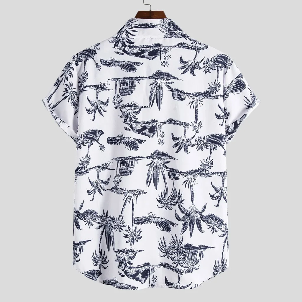 Мужская летняя рубашка с принтом, с коротким рукавом и отложным воротником