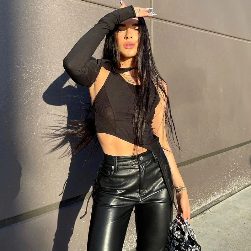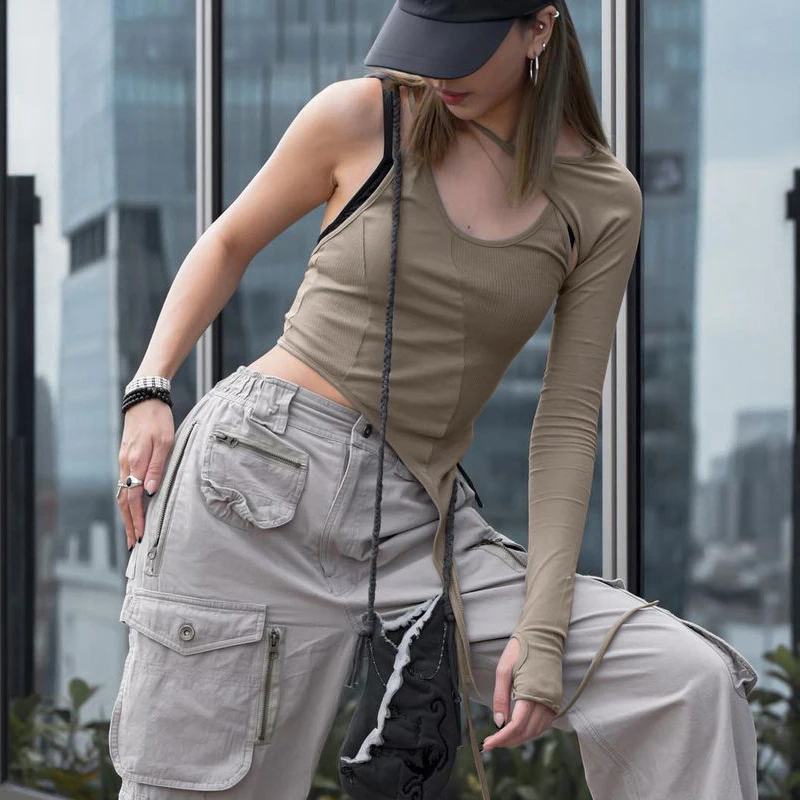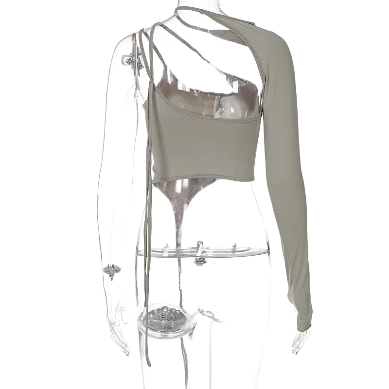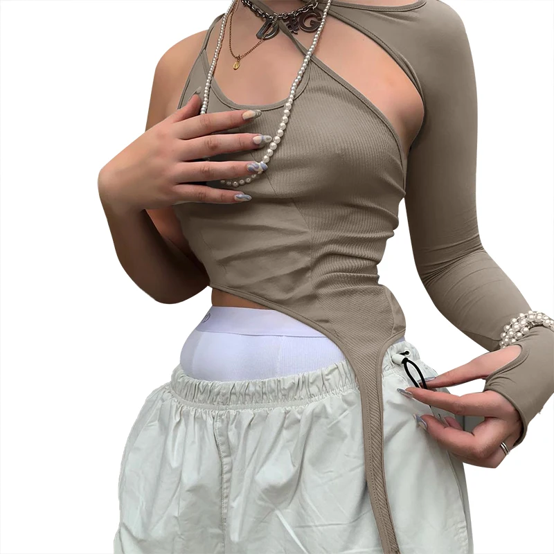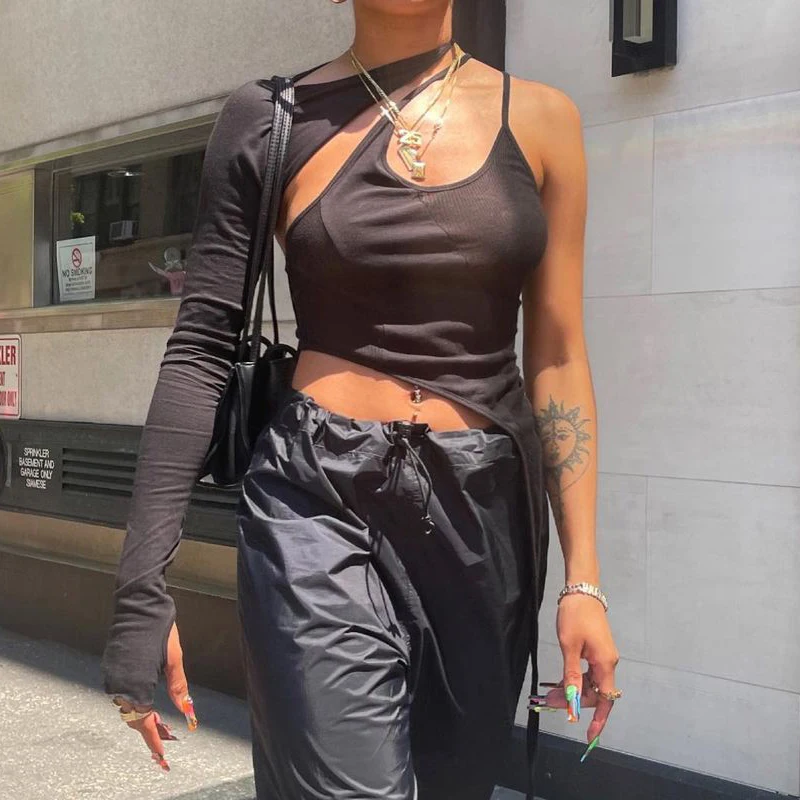 Hugcitar 2021, летний женский однотонный топ с лямкой на одно плечо, с открытой спиной, с вырезами, со шнурком, облегающий сексуальный топ для Клубное вечерние Y2K
