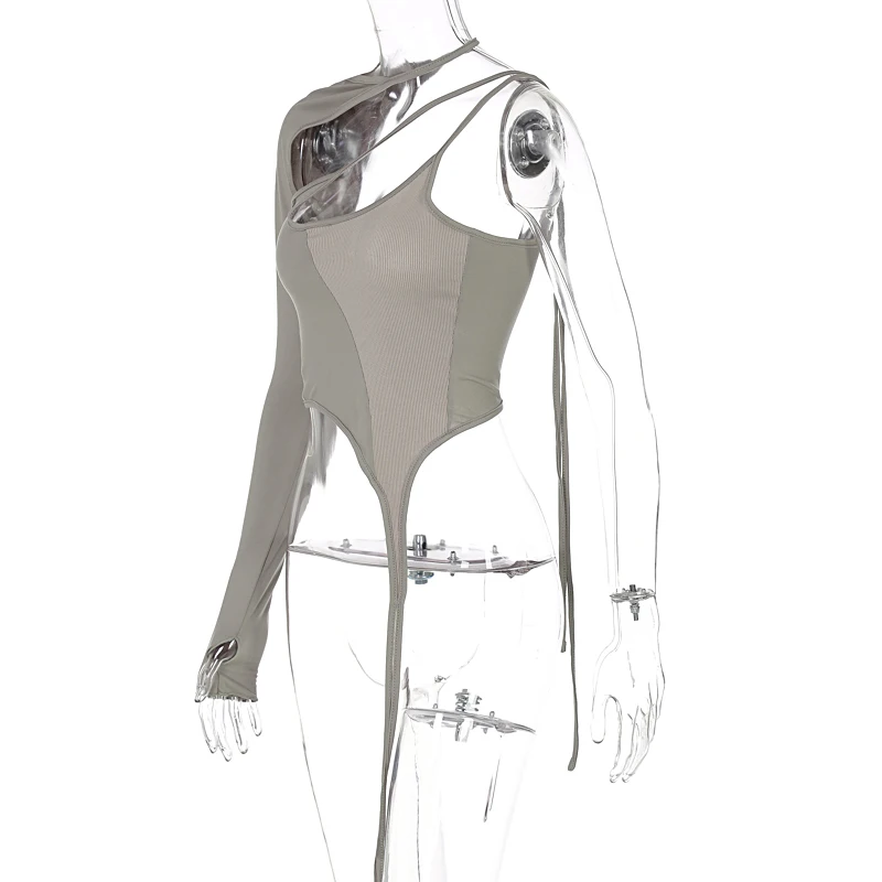 Футболка женская на одно плечо, с длинным рукавом, в стиле пэчворк,...