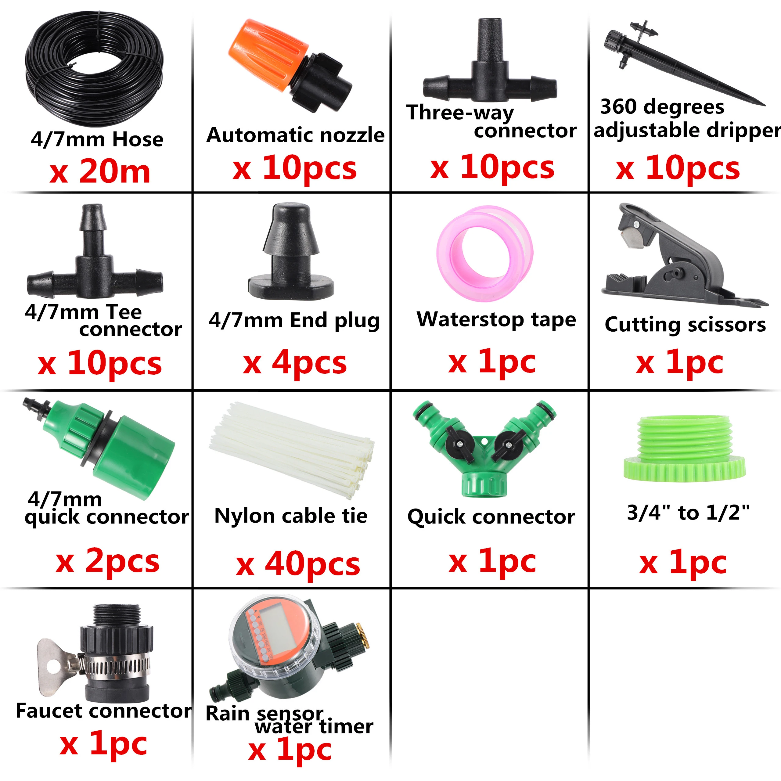 【 Водосберегающие и высококачественные ирригационные трубы изготовлены из высококачественных УФ-устойчивых материалов. Настройте систему капельного орошения, она может автоматически орошать в соответствии с вашими настройками при включении крана и может сэкономить до 75% экономии воды по сравнению с ручным поливом.