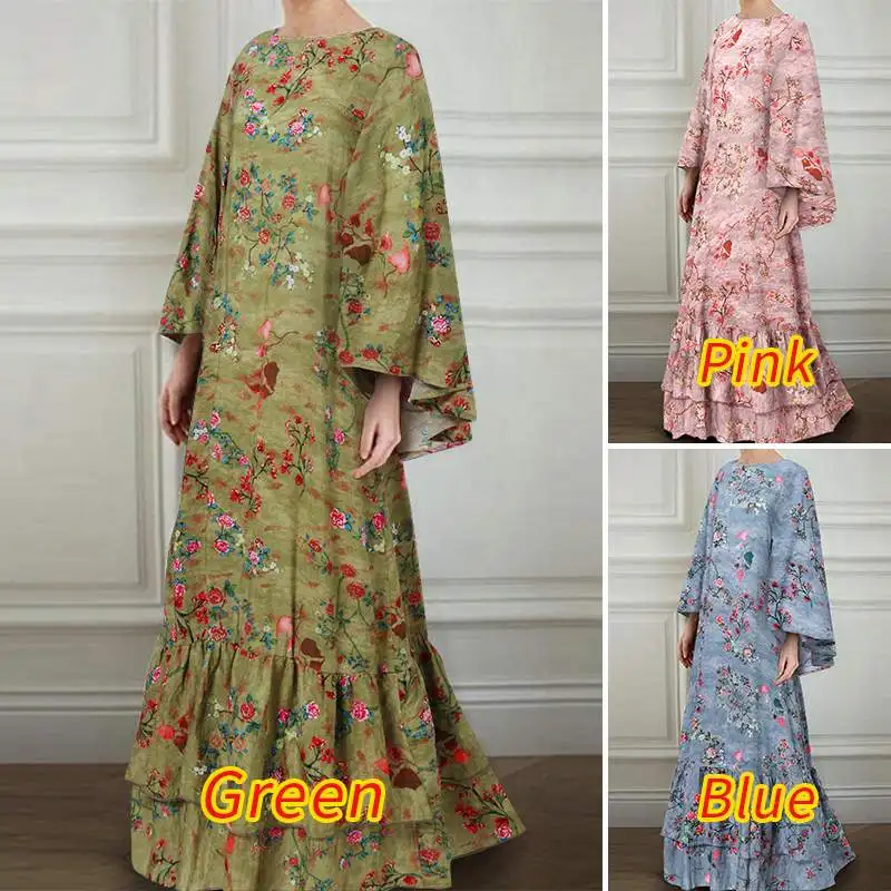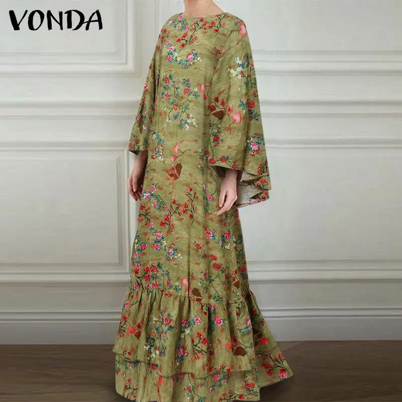Элегантное платье-Кафтан 2021 VONDA, Женский винтажный сарафан с круглым вырезом, длинное Цветочное платье-макси с оборками, большие размеры, женское платье