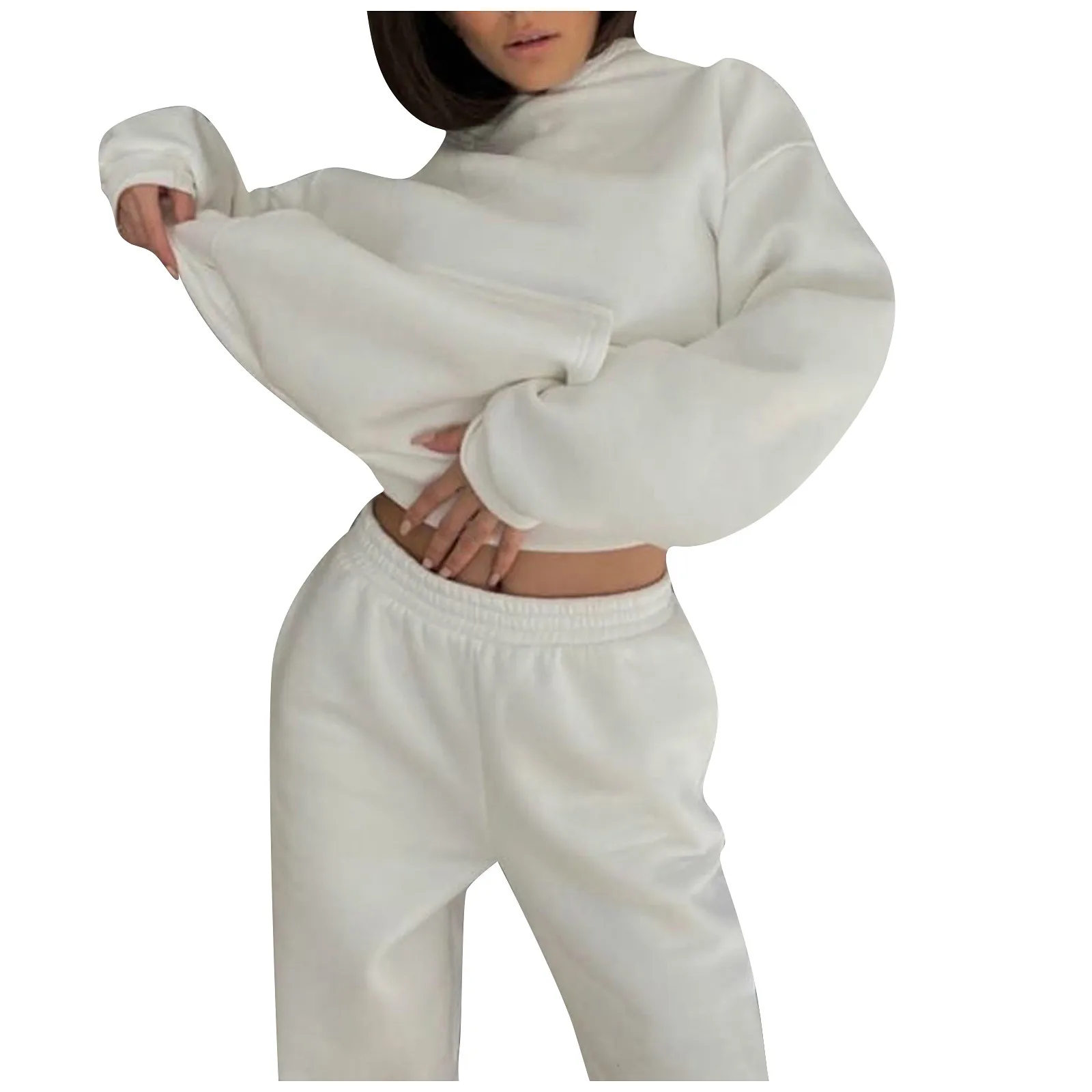 Женская Повседневная однотонная толстовка с длинными рукавами, брюки, спортивный костюм