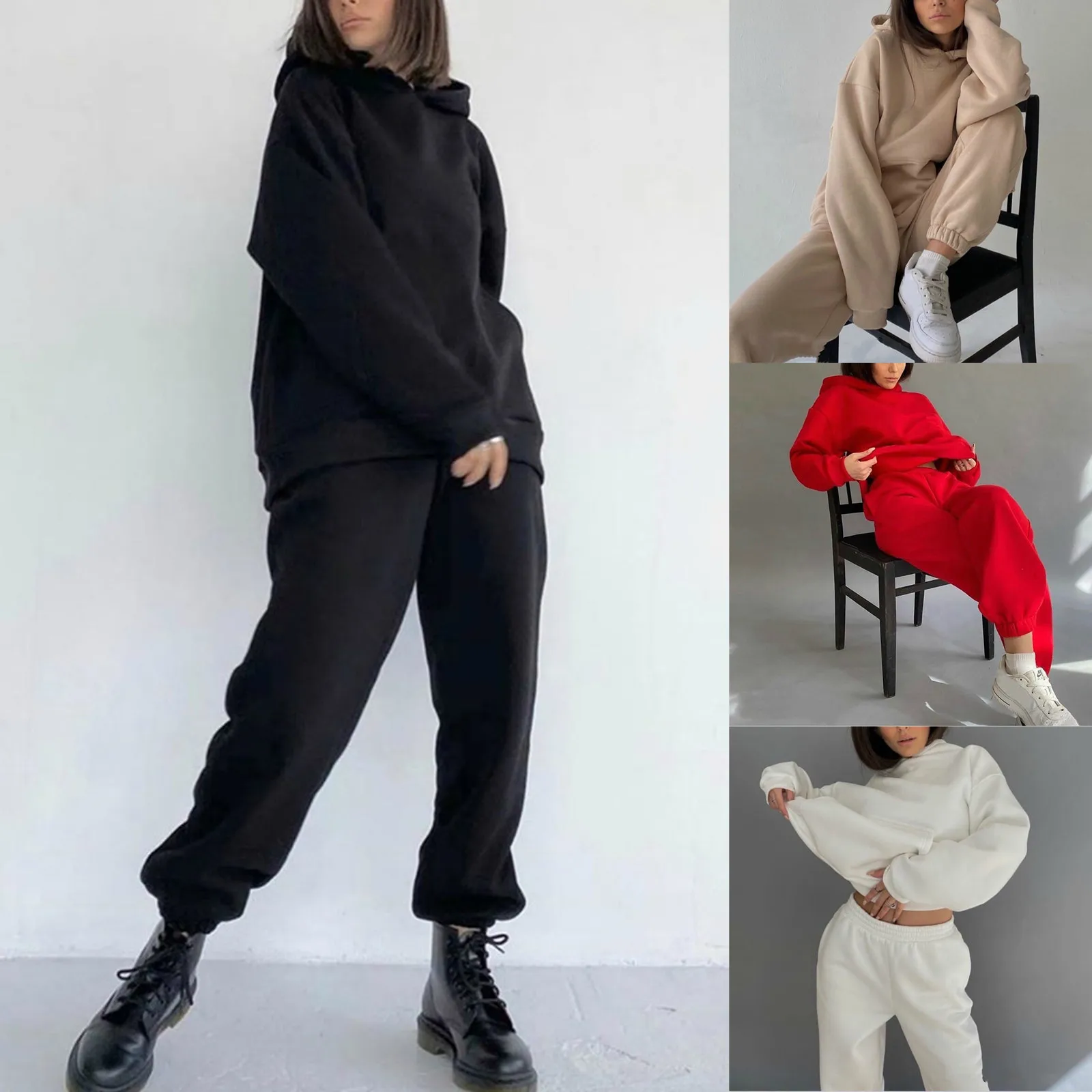 Женский Повседневный свободный комплект с толстовкой, удобный комплект из двух предметов, Модный свитшот, спортивная одежда с капюшоном, женские спортивные костюмы 2021