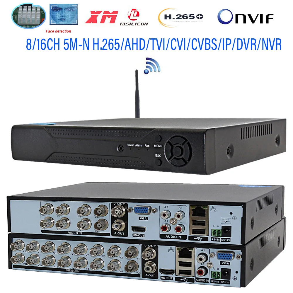 Аналоговый видеорегистратор H265 Xmeye, 8CH, AHD, Wi-Fi, NVR, 16CH, видеорегистратор, распознавание лица, 5MP-N, гибридное наблюдение, 6 в 1, P2P, Onvif