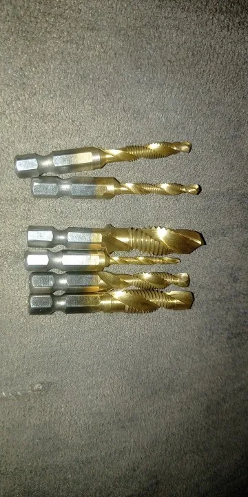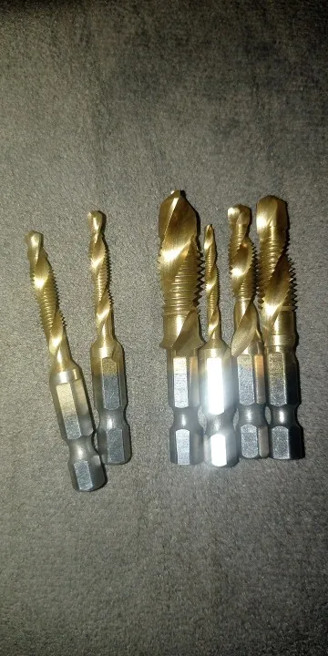 Материал: Высокоскоростная сталь (с титановым покрытием)Цвет: как показано на фотографииШестигранный хвостовик: 6,35 мм (1/4 ")Стандарт: метрическийРазмер резьбы: M3, M4, M5, M6, M8, M10Диаметр крана: m3x0.5мм, m4x0.7мм, m5x0.8мм, m6x1.0мм, m8x1.25мм, m10x1.5ммИспользуется: машинаФункция: сверлениеКоличество: 6