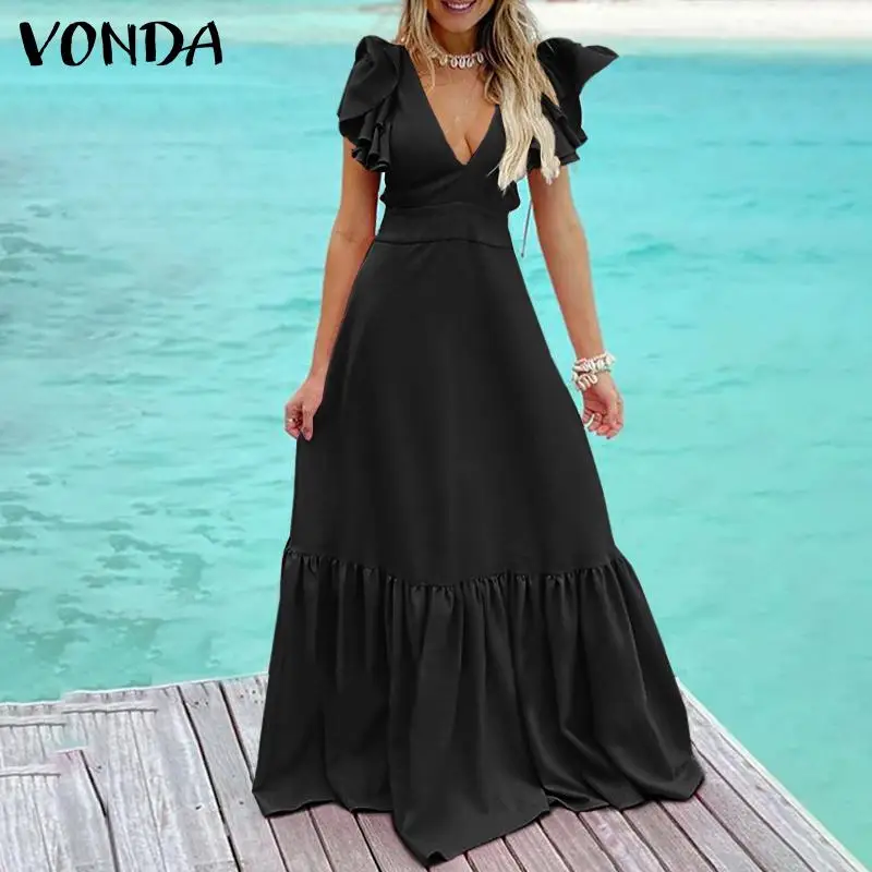 Элегантное Вечернее Платье VONDA 2021, летнее женское сексуальное длинное платье макси с глубоким V-образным вырезом, пляжный богемный сарафан большого размера, Vestidos Robe