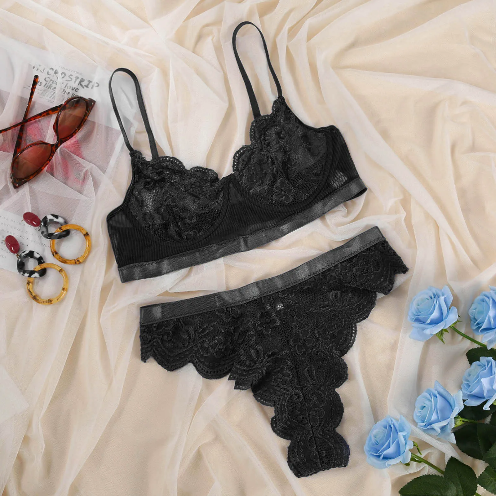 Соблазнительное женское нижнее белье, комплект нижнего белья, кружевной прозрачный соблазнительный бюстгальтер, трусики, прозрачное сексуальное чувственное нижнее белье с цветочным кружевом, новинка