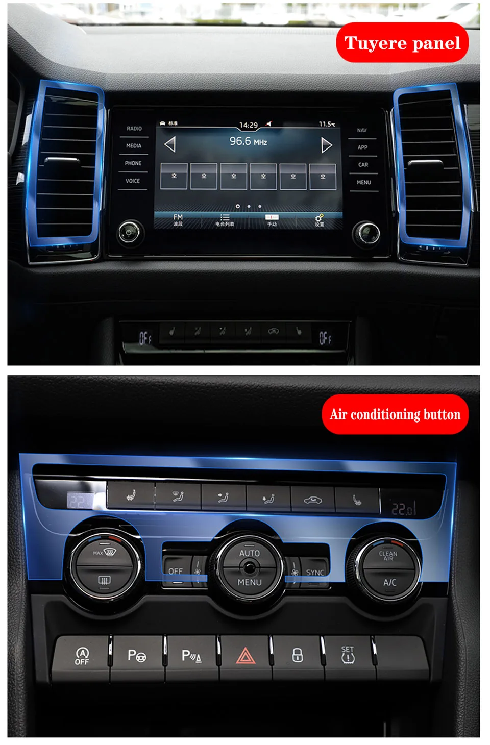 Для Skoda Kodiaq GT 2017-2020 интерьер автомобиля центральной консо...