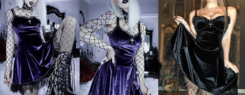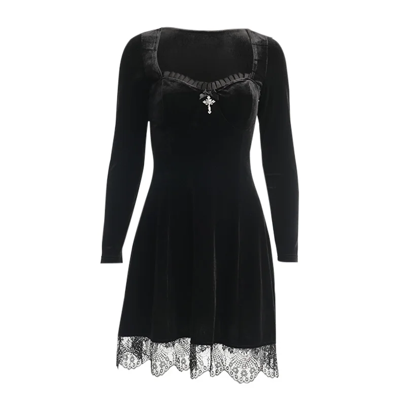 Женское бархатное платье InsDoit, черное или фиолетовое винтажное платье-мини с длинным рукавом, в готическом стиле, элегантное платье для клуба и вечеринки, осень