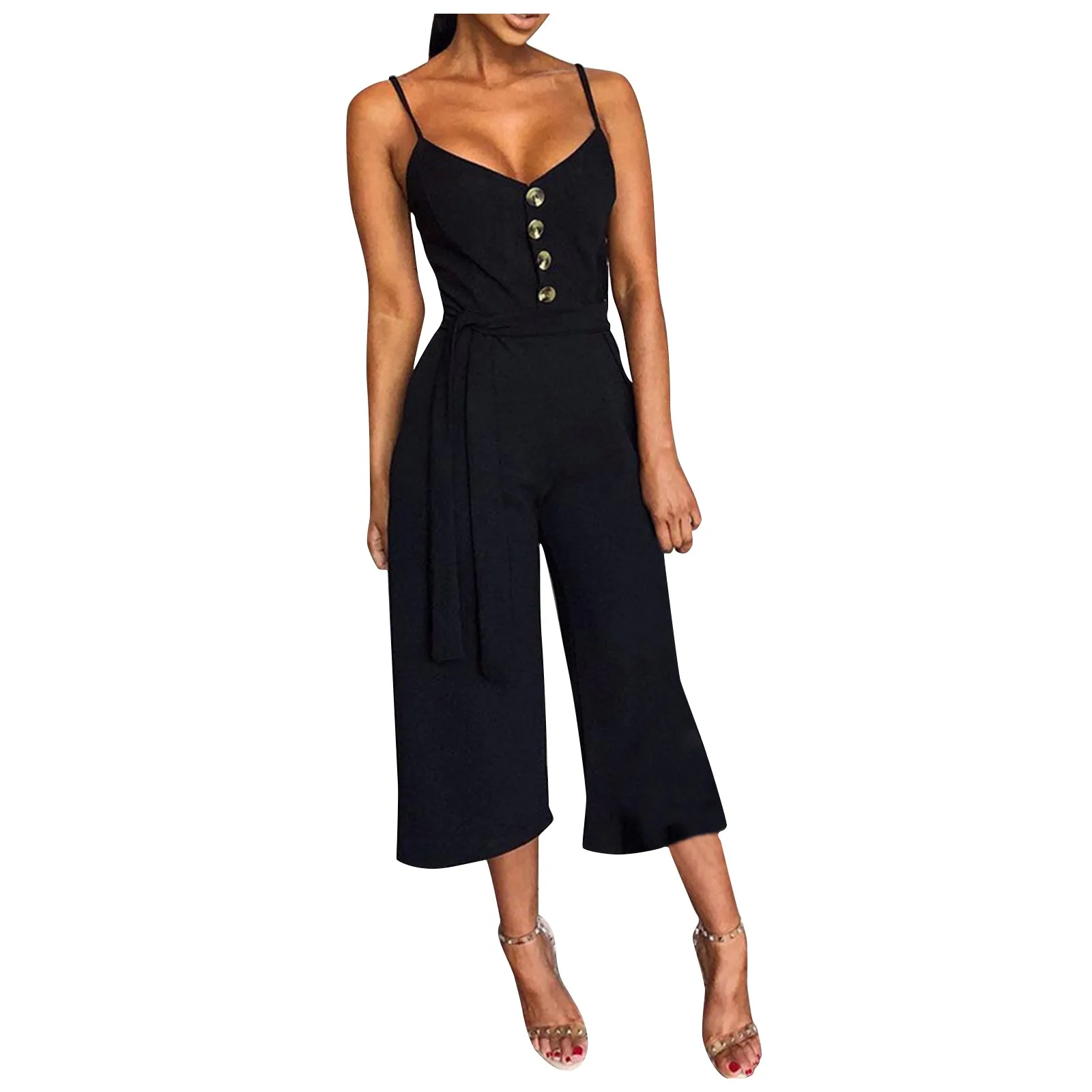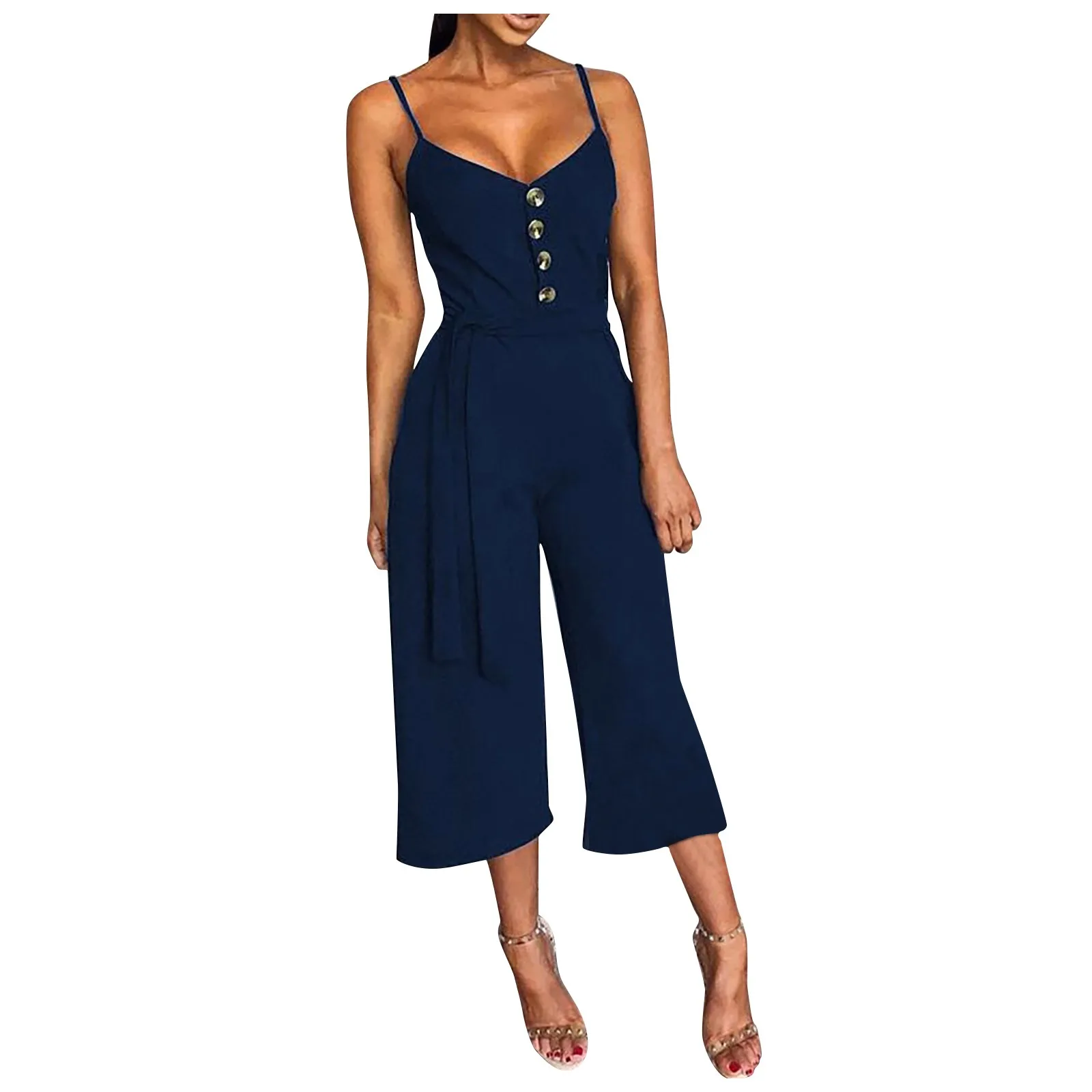 Женский комбинезон с открытой спиной, повседневный свободный однотонный тонкий комбинезон без рукавов, лето 2021