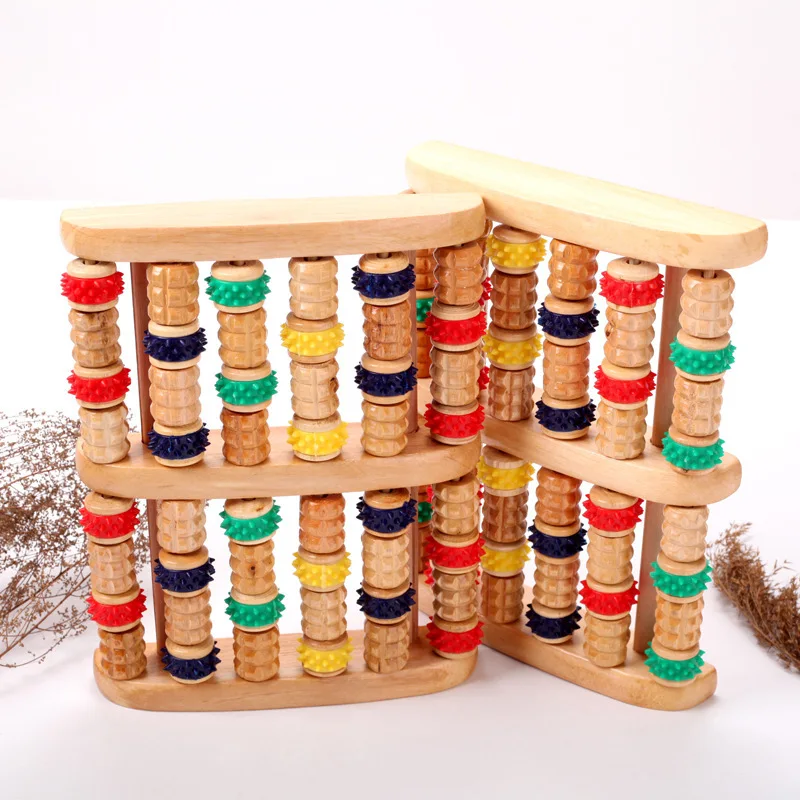 Роликовый массажер для ног, массажер для ног с деревянными роликовы...