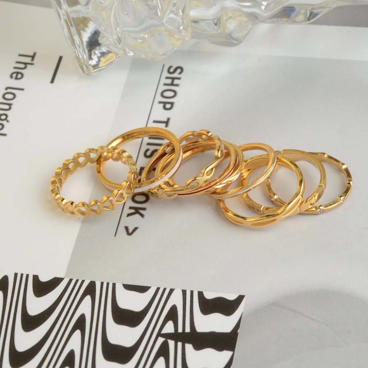 Набор колец из нержавеющей стали в стиле хип-хоп и золотых цепочек для женщин и девушек, простые кольца на палец 2021, трендовые ювелирные украшения для вечеринок