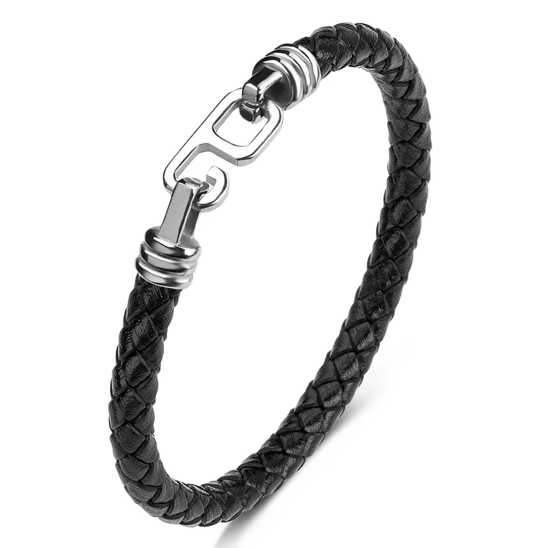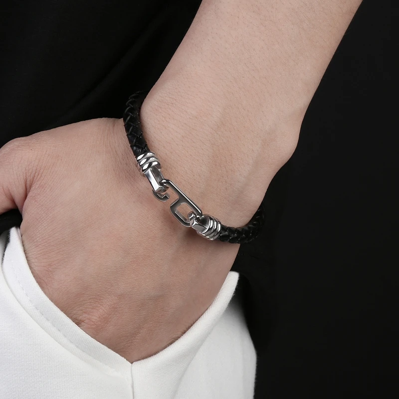 Простой плетеный кожаный мужской браслет с G-образной пряжкой из нержавеющей стали, браслеты, модные ювелирные изделия ручной работы, плетеные браслеты, мужской подарок P628