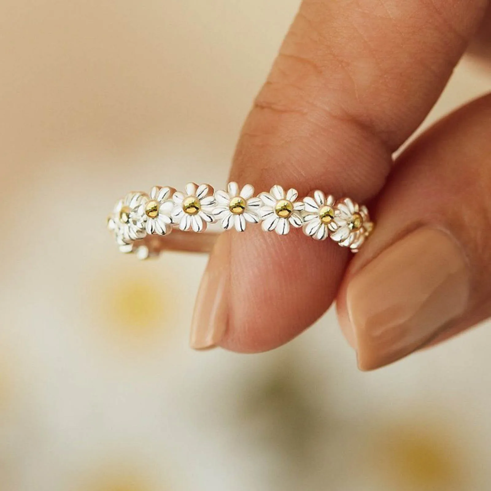 Женские винтажные кольца с маргариткой, милые кольца с цветами, регулируемые открытые манжеты, Свадебные обручальные кольца, Женские Ювелирные изделия, кольца вечерние