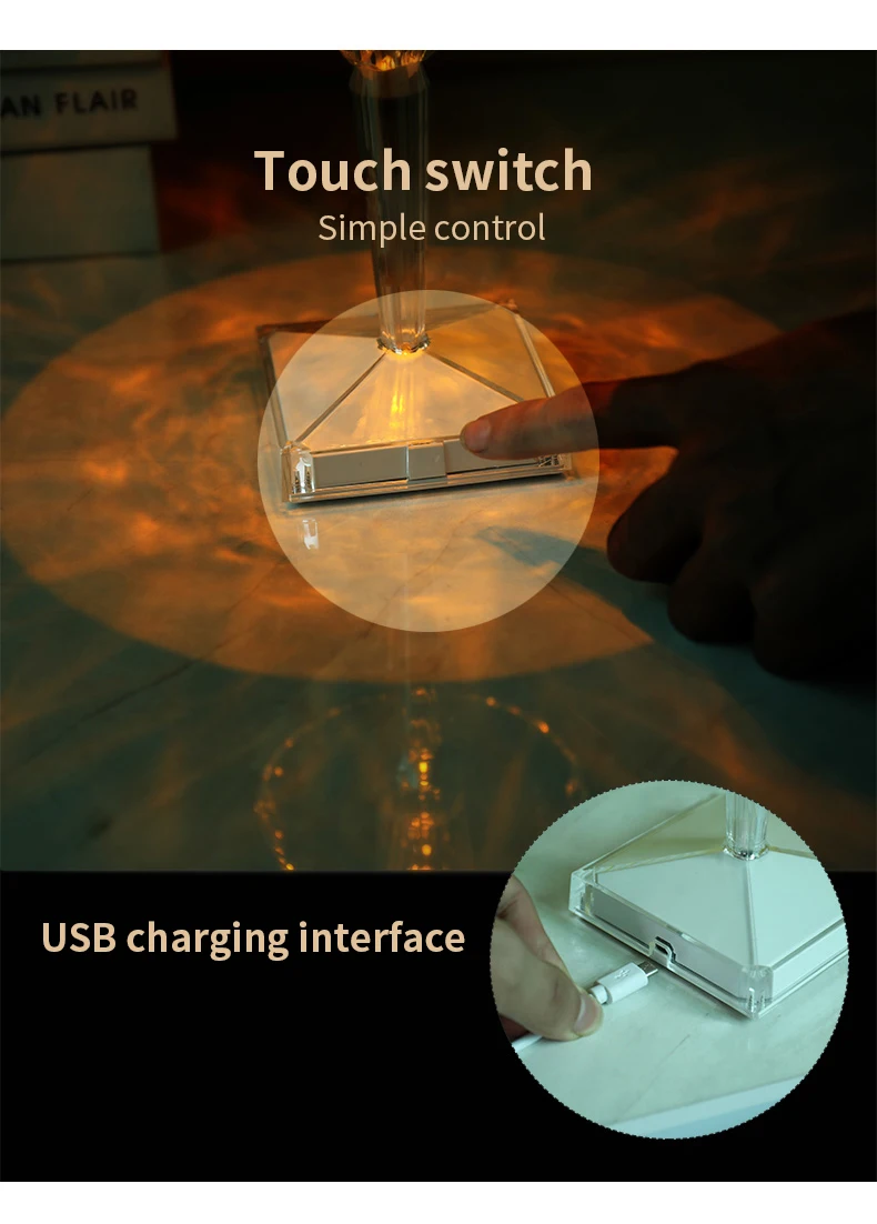 Романтическая настольная лампа, акриловый бриллиант, USB, сенсорный...