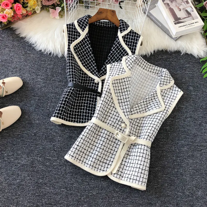 Новинка, модный жилет для девушек, Женский костюм на осень и зиму 2021, клетчатый жилет с воротником, женский жилет, куртка, верхняя одежда, короткая
