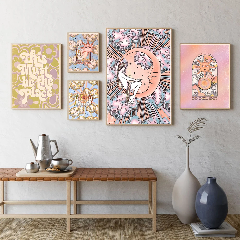 Постер в стиле бохо с изображением ведьмы тела девочки звезды луны солнца богини винтажная Картина на холсте нордическая Современная гостиная домашний декор