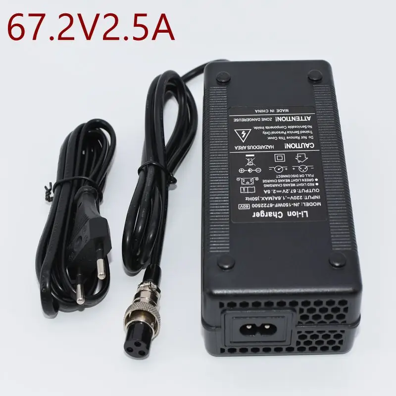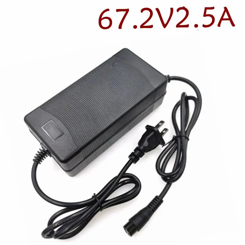 Описание зарядного устройстваВход напряжение: 100-240V 50 / 60HZПодходящее напряжение: 90-264V 47 / 63 ГцВыходное напряжение: 67,2 вВыходной ток: 2,5aРабочая температура/Влажность: -10 ° C-50 ° C, 20% -90% RHТемпература хранения/Влажность: -10 ° C-60 ° C, 20% -90% RHШтепсельная Вилка для зарядки: штепсельная вилка США/ЕС/Великобритании/Австралии, которую мы можем предложитьСтандарт безопасности: CE / RoHSОбратится: 60V 16S литий-ионный аккумуляторПримечание: Если вам нужно другое зарядное устройство или разъем, пожалуйста, свяжитесь с нами напрямую. Спасибо!Посылка включает в себя: 1 шт. Зарядное устройство переменного тока и кабель питания