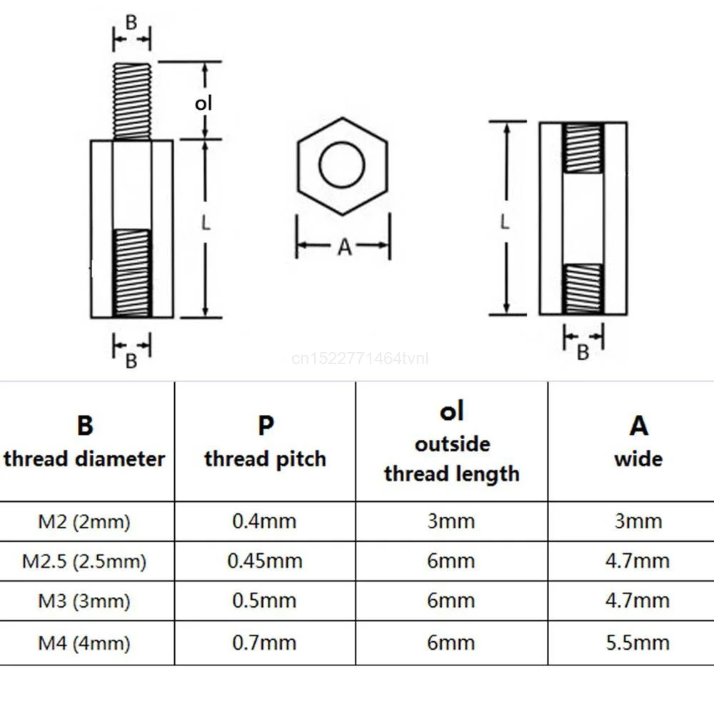 25102050 шт. резьба M3 * L + 6 мм Шестигранная латунная Проставка винт столб PCB компьютер материнская плата Женский Мужской Проставка