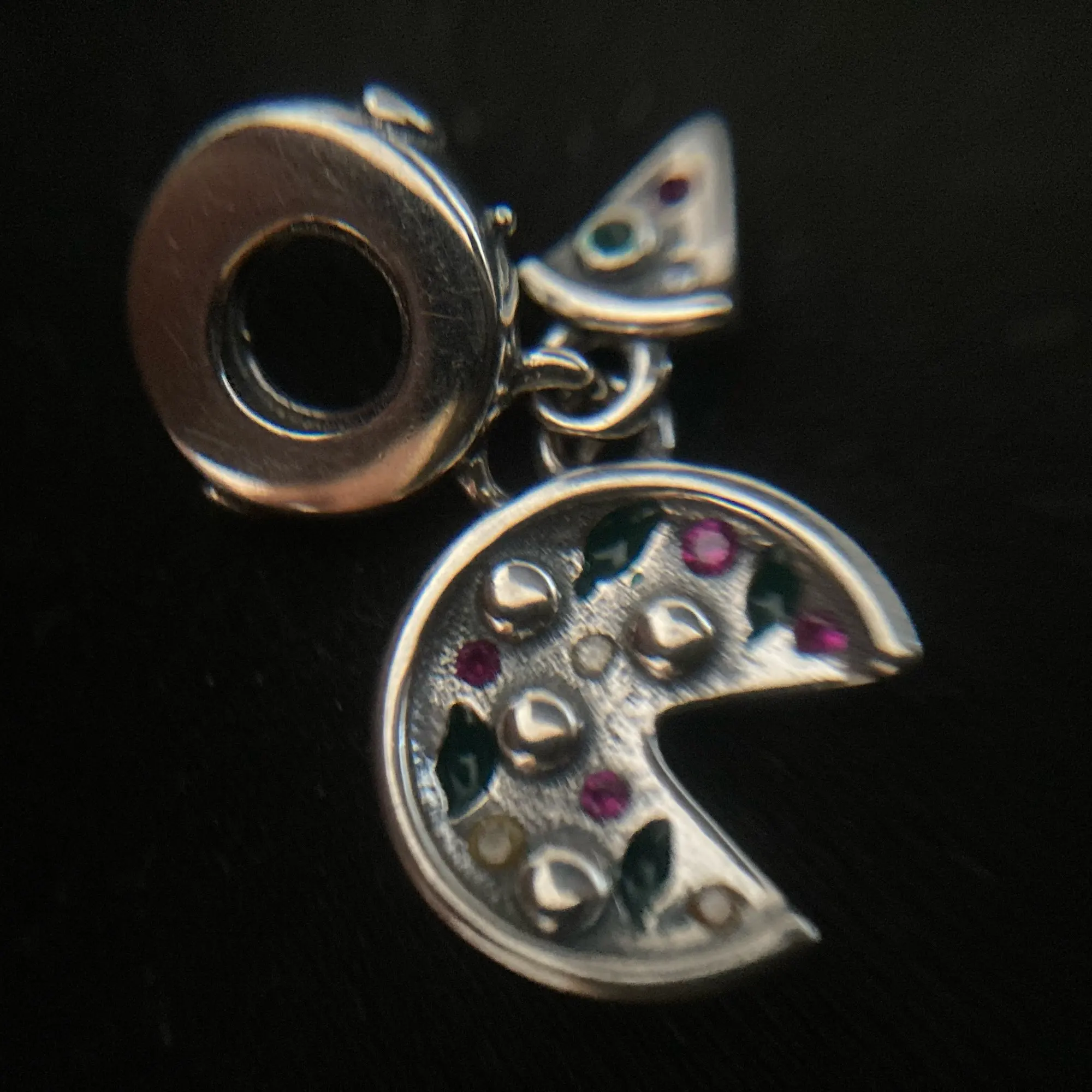 Подвеска очень хорошо сделана. Остались недовольны краской, имитирующей крышку пиццы. Мой товар очень размытый.