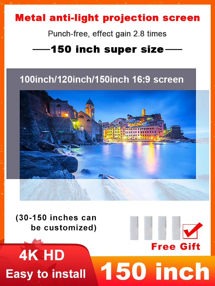 Если вам нужен 150-дюймовое металлическое проекционный экран, пожалуйста, нажмите на картинку ниже, или найти ее в магазине