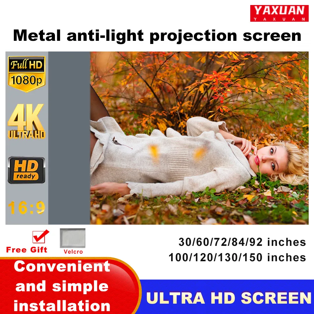 Металлическая анти-светящаяся занавеска высокой яркости 16:9 100 120 133 дюймов для дома и улицы офиса Портативный 4K 3D HD Проекционный экран