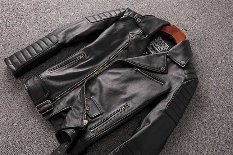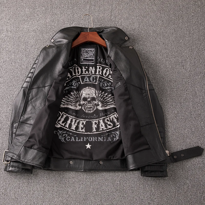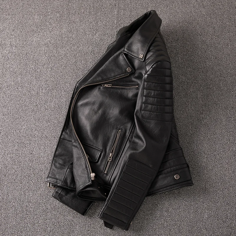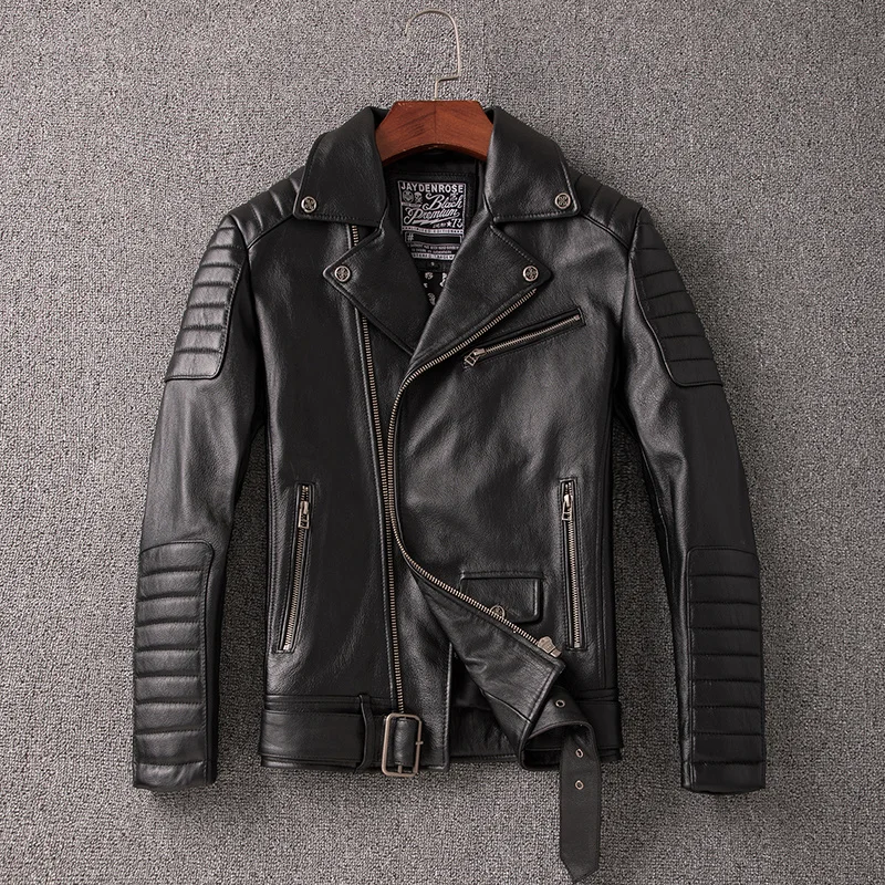 Мужская куртка из натуральной кожи, Байкерская винтажная куртка из коровьей кожи, Осень-зима 200%