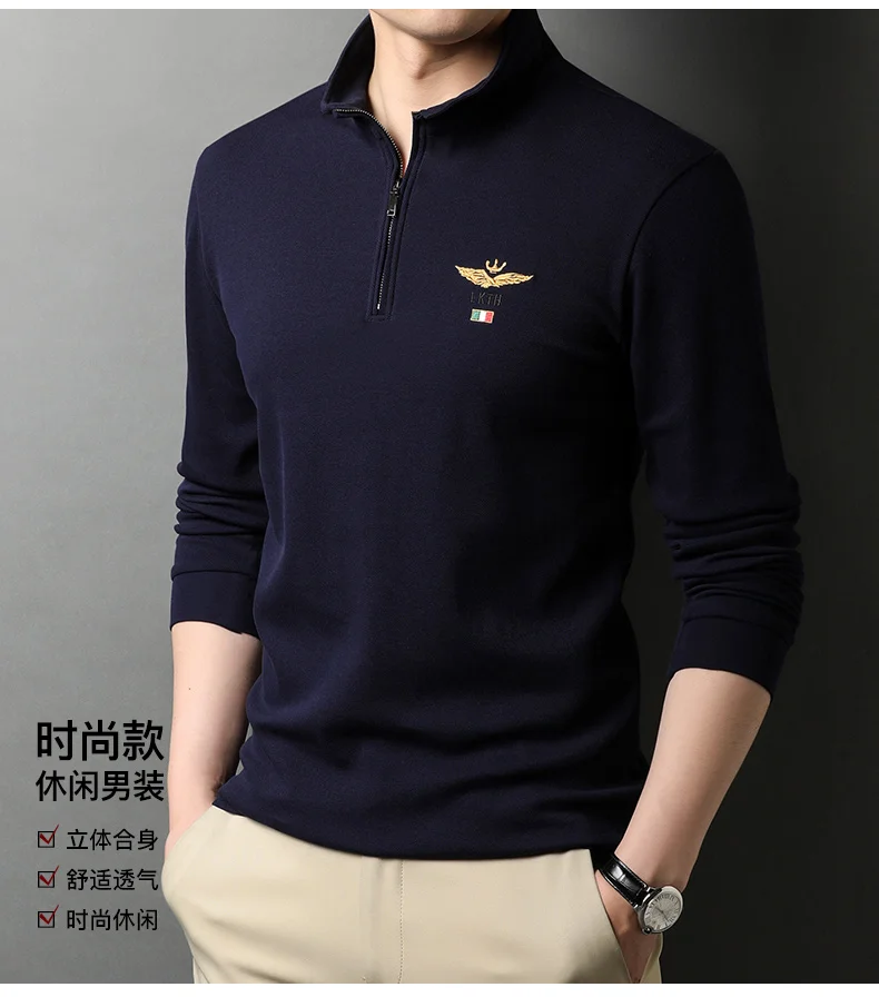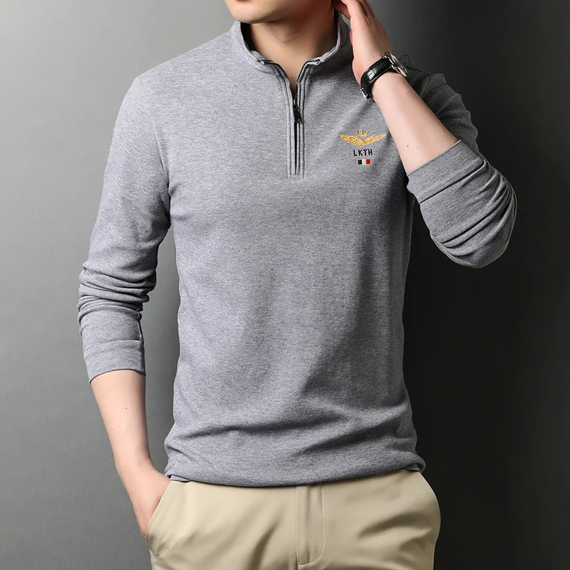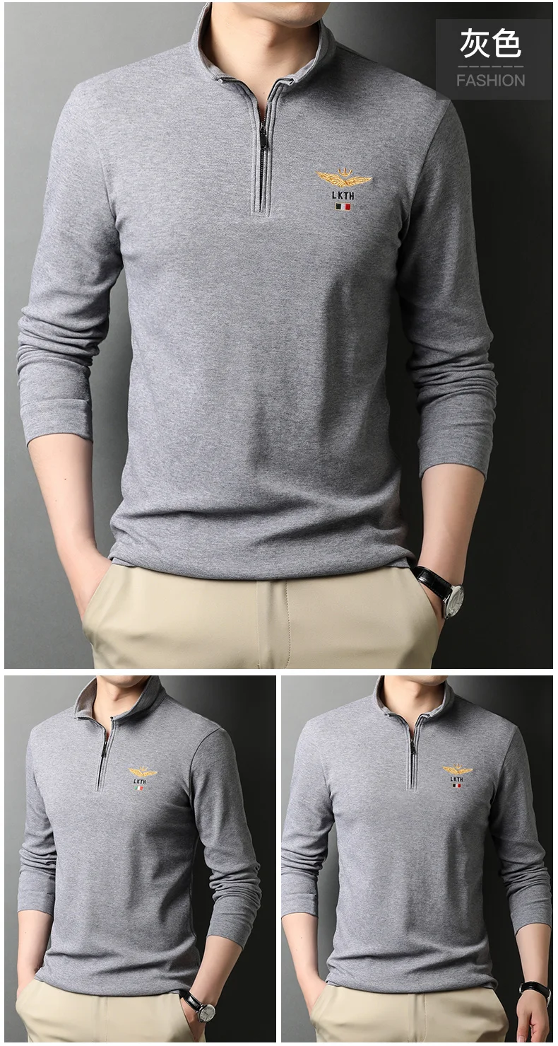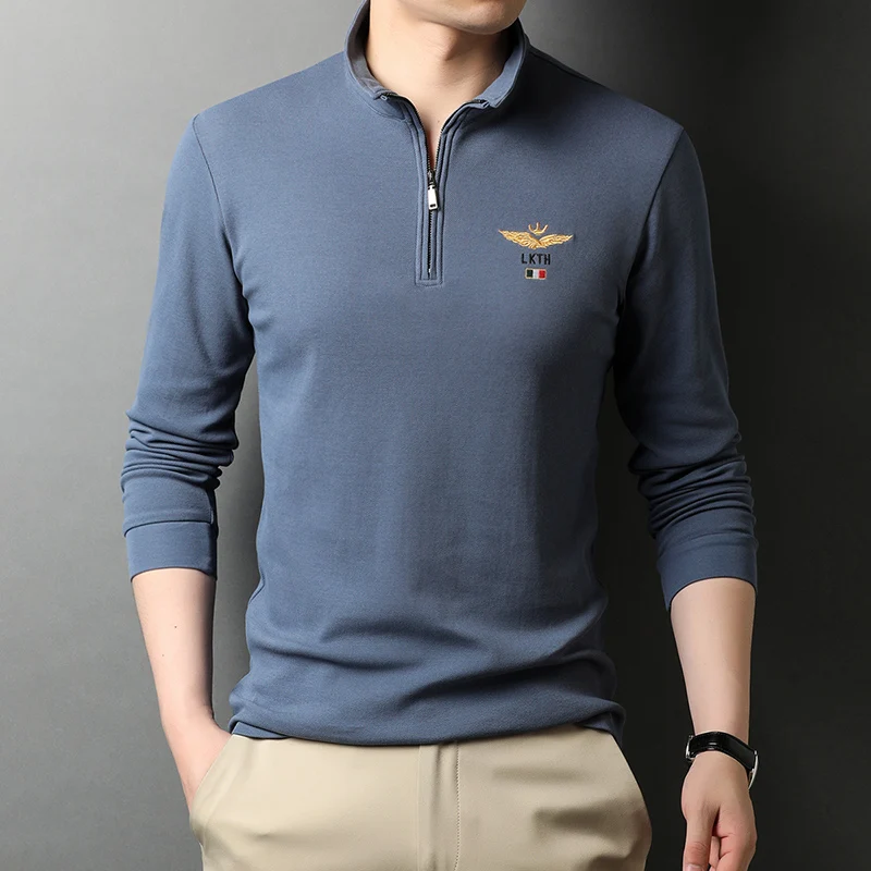 Рубашка-поло мужская с длинным рукавом, 100% хлопок, 2021