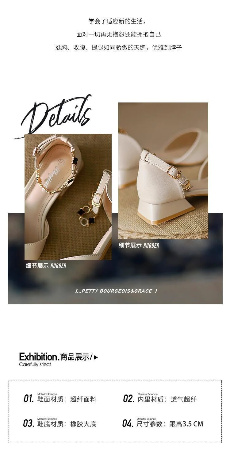 [Быстрый возврат] Baotou/Босоножки на среднем каблуке; Новинка 2021 года; Сезон лето; Универсальная обувь Mary Jane на толстом каблуке с цепочкой