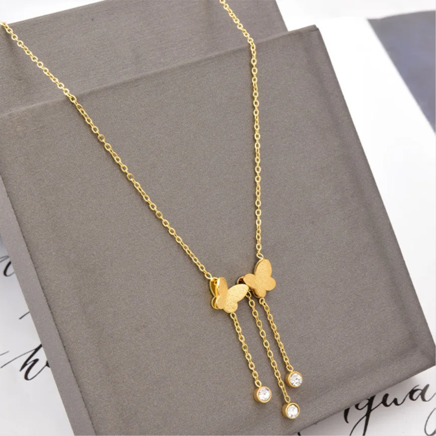 Браслет на ногу женский из нержавеющей стали 316L, Элегантная двухслойная матовая цепочка с бабочкой и 3 кисточками из циркония, Ювелирное Украшение