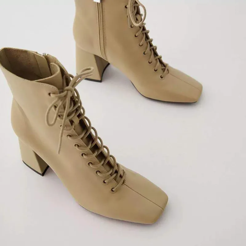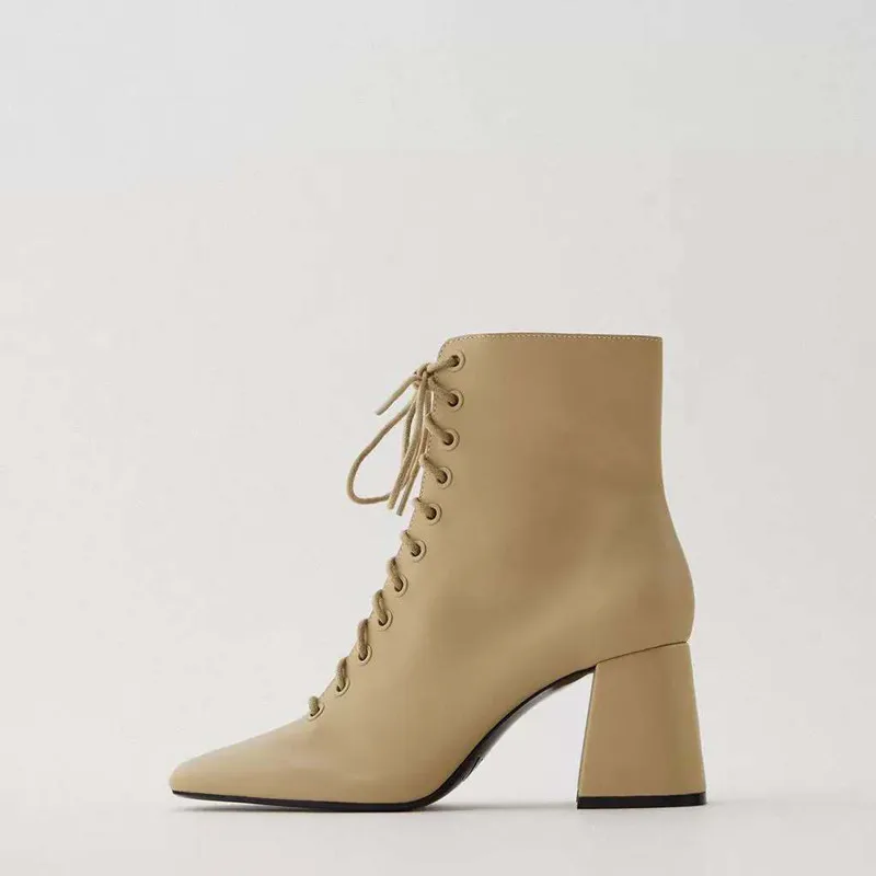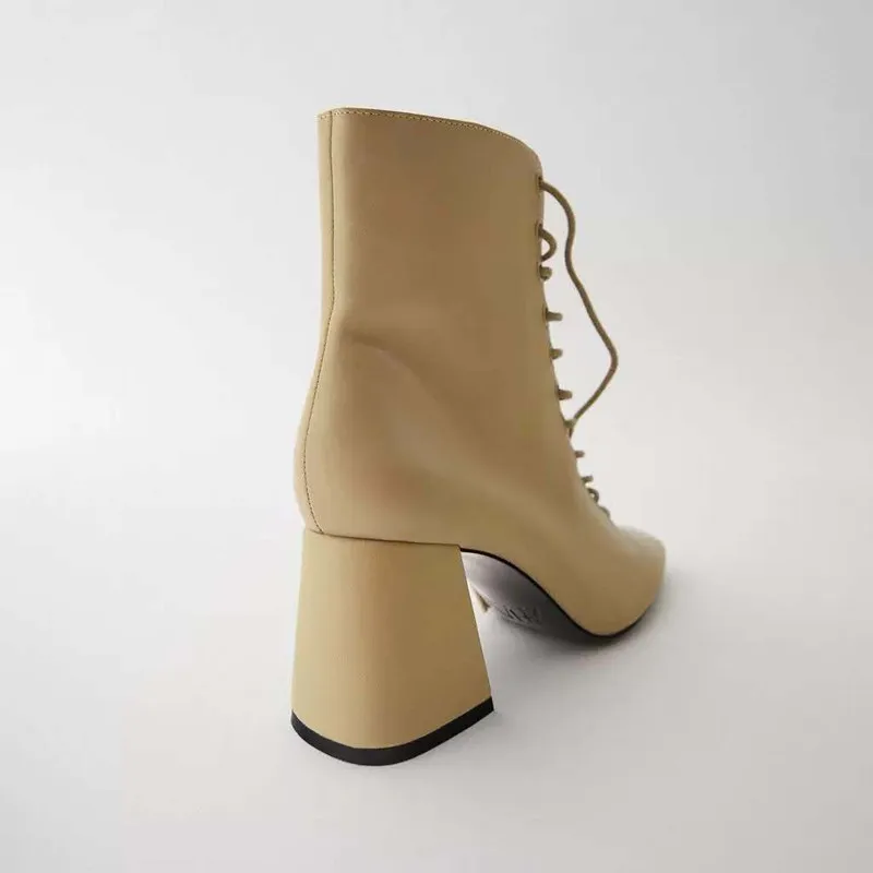Женские ботинки на высоком каблуке ZA, зимние ботинки из верблюжьей и коричневой коровьей кожи в британском стиле, на толстом каблуке