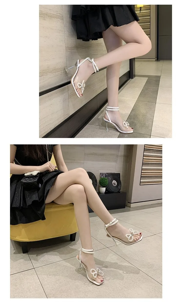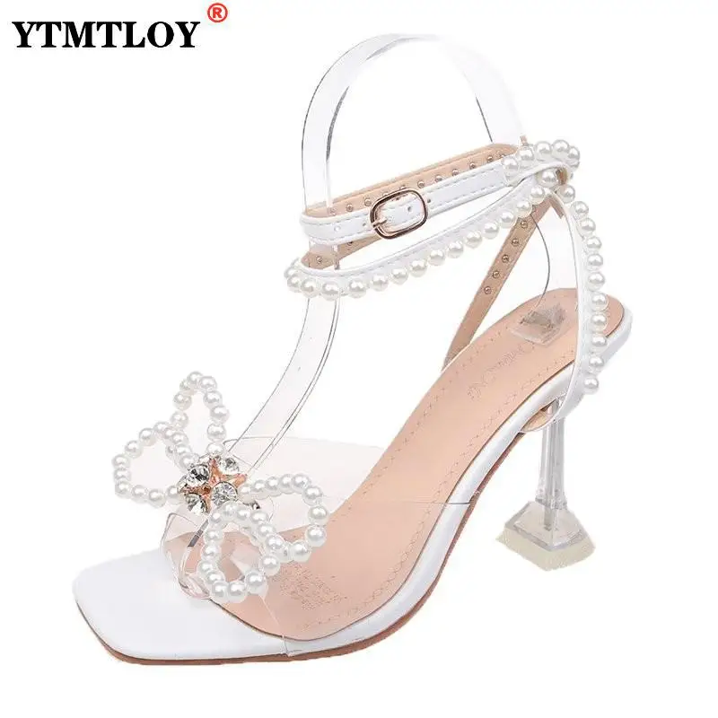 Сандалии-гладиаторы женские на высоком каблуке, пикантные босоножки на ремешке с бусинами, туфли-лодочки с пряжкой и открытым носком, вечерняя Обувь, цвет белый