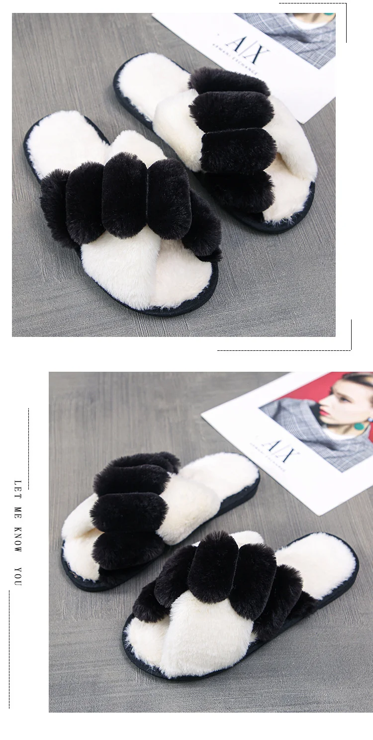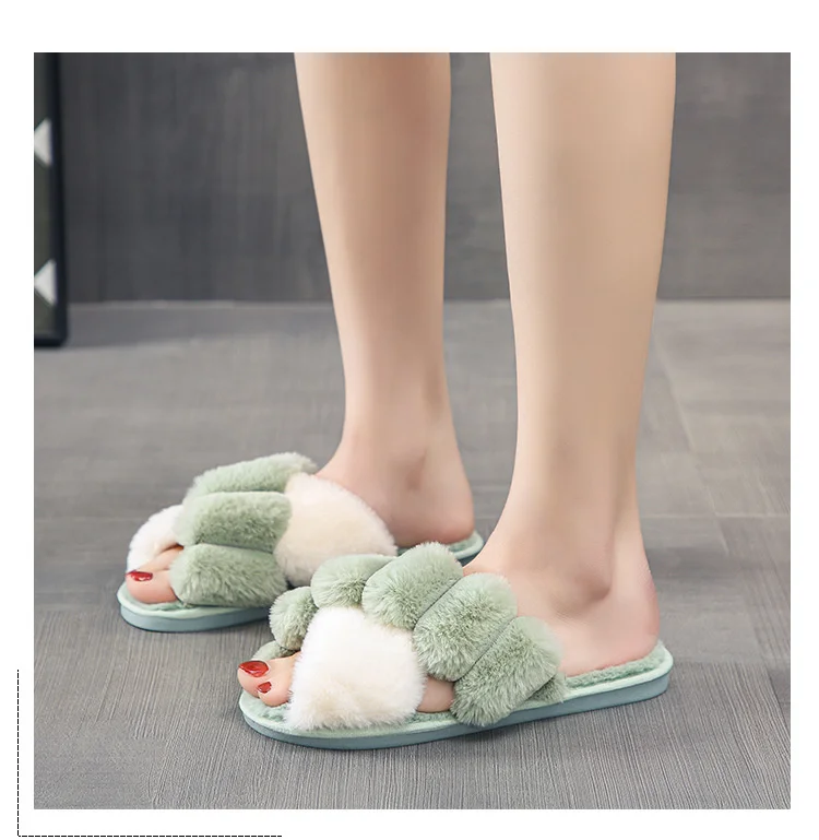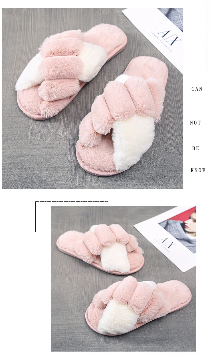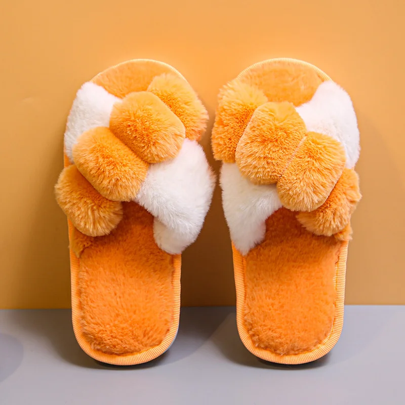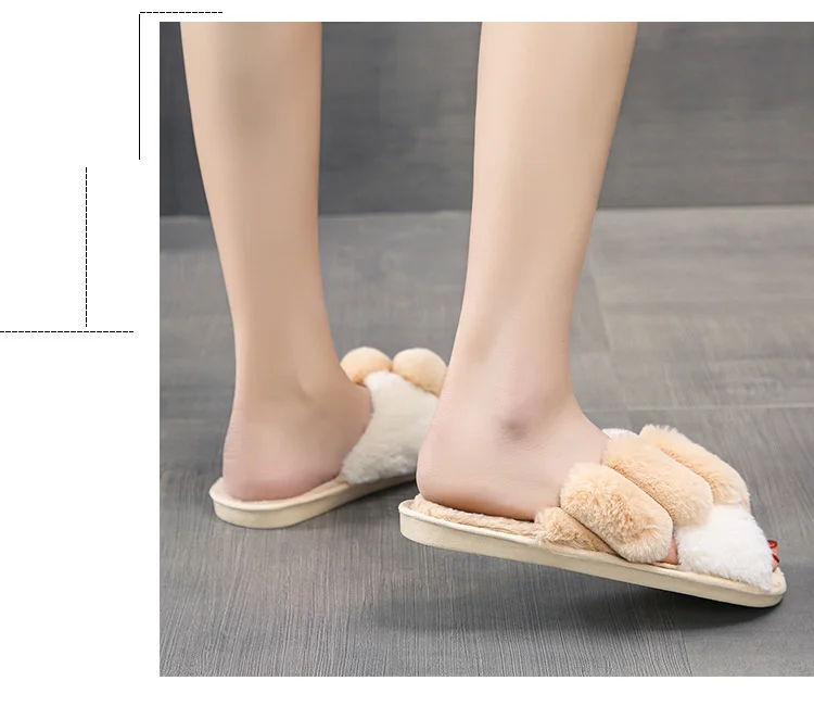 Женские меховые тапочки Kawaii, зимние, с перекрестными полосками, ...