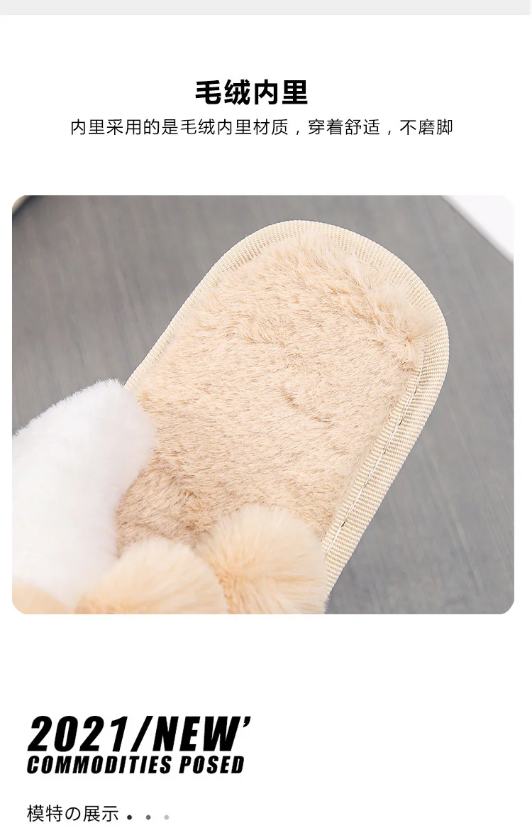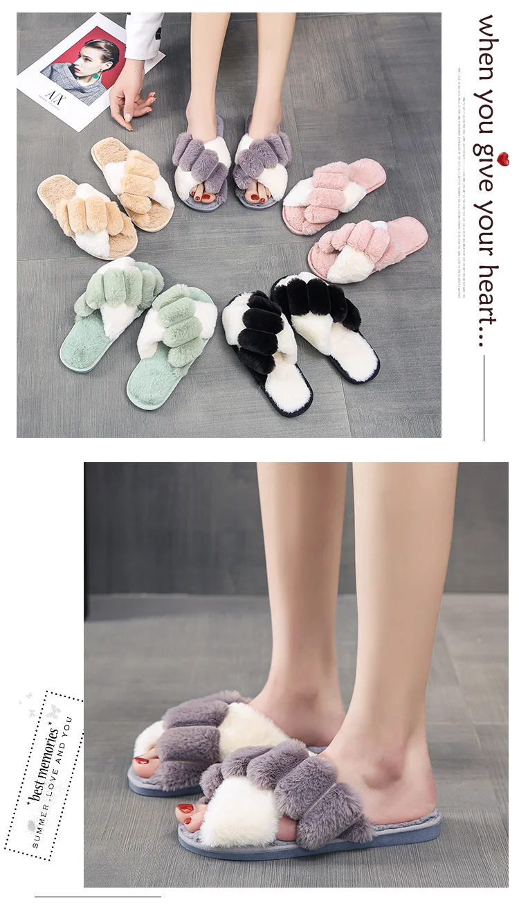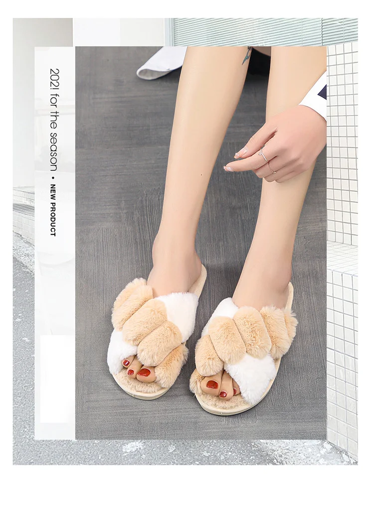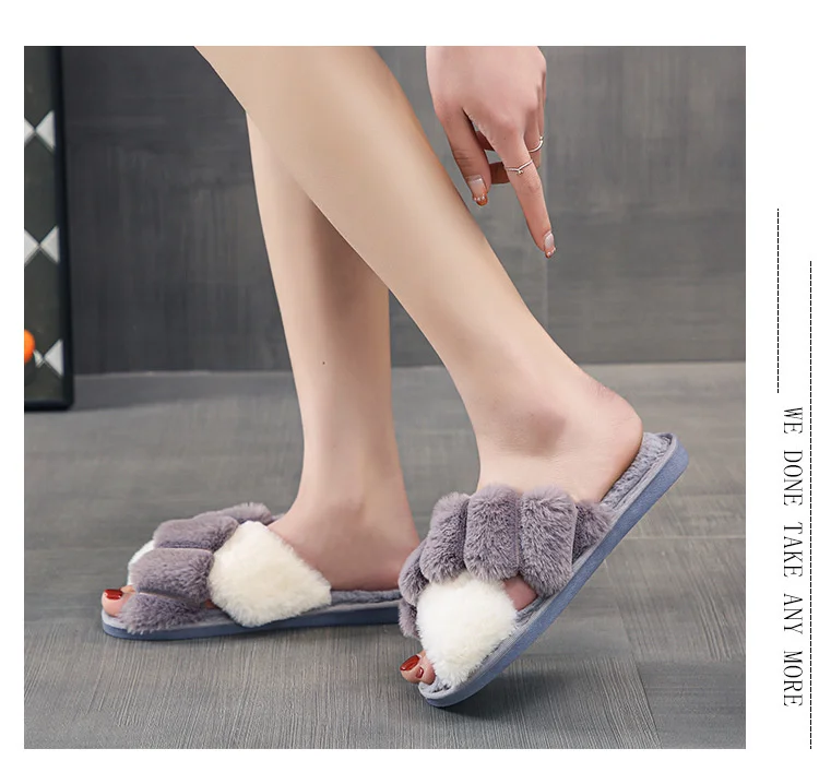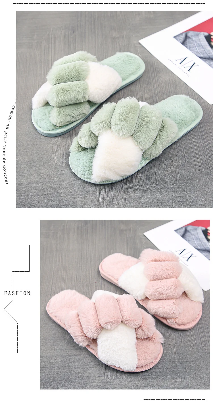 Женские меховые тапочки Kawaii, зимние, с перекрестными полосками, ...