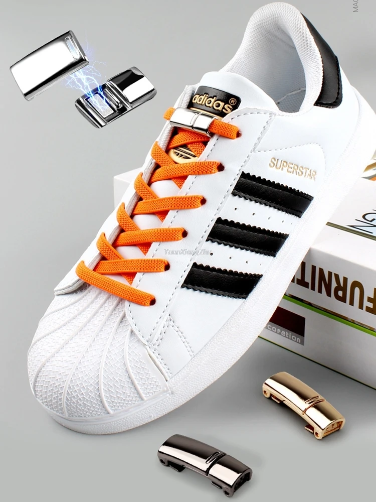 Новые шнурки с магнитным замком, эластичные шнурки для обуви без завязывания, радужные шнурки для детей и взрослых, ленивые шнурки одного размера для любой обуви