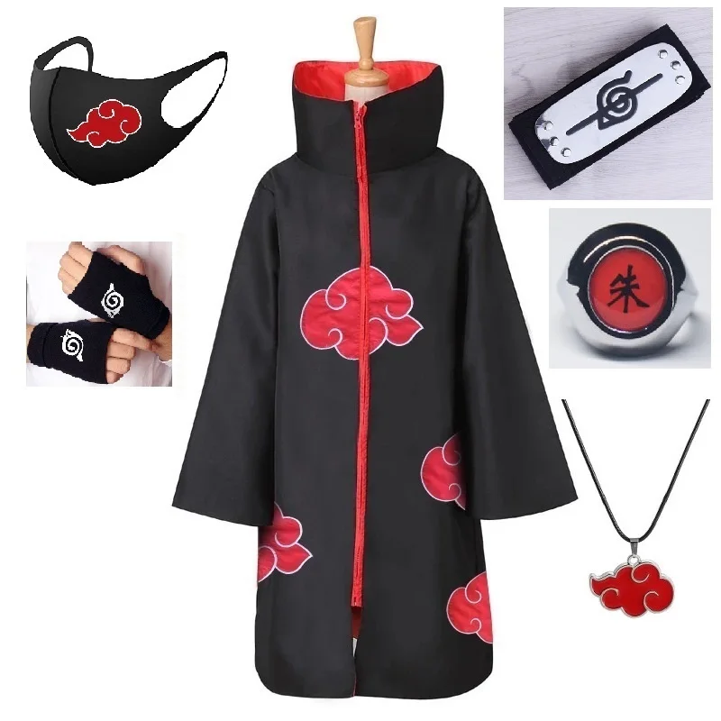 Костюм для косплея Акацуки, Учиха, Тоби, Обито, Акацуки, плащ, маска на Хэллоуин для мужчин и женщин, костюм для косплея, повязка на голову, аксессуары, 5 шт.
