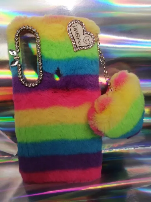 3D милый пушистый плюшевый мягкий меховой Радужный чехол для телефо...
