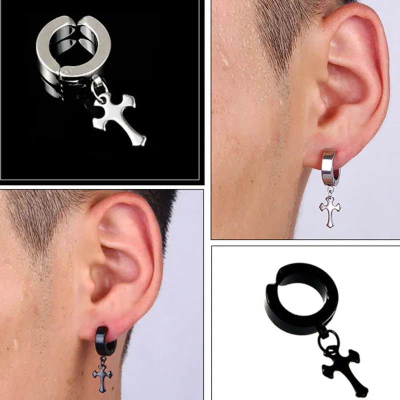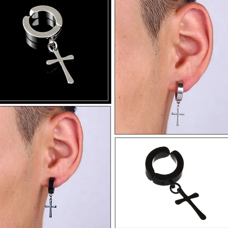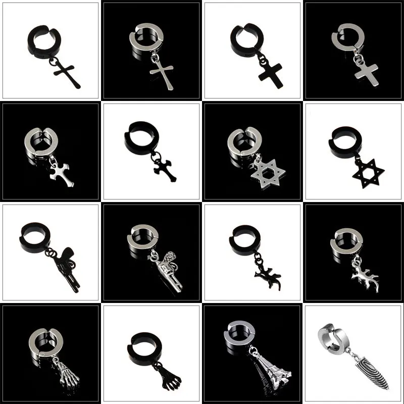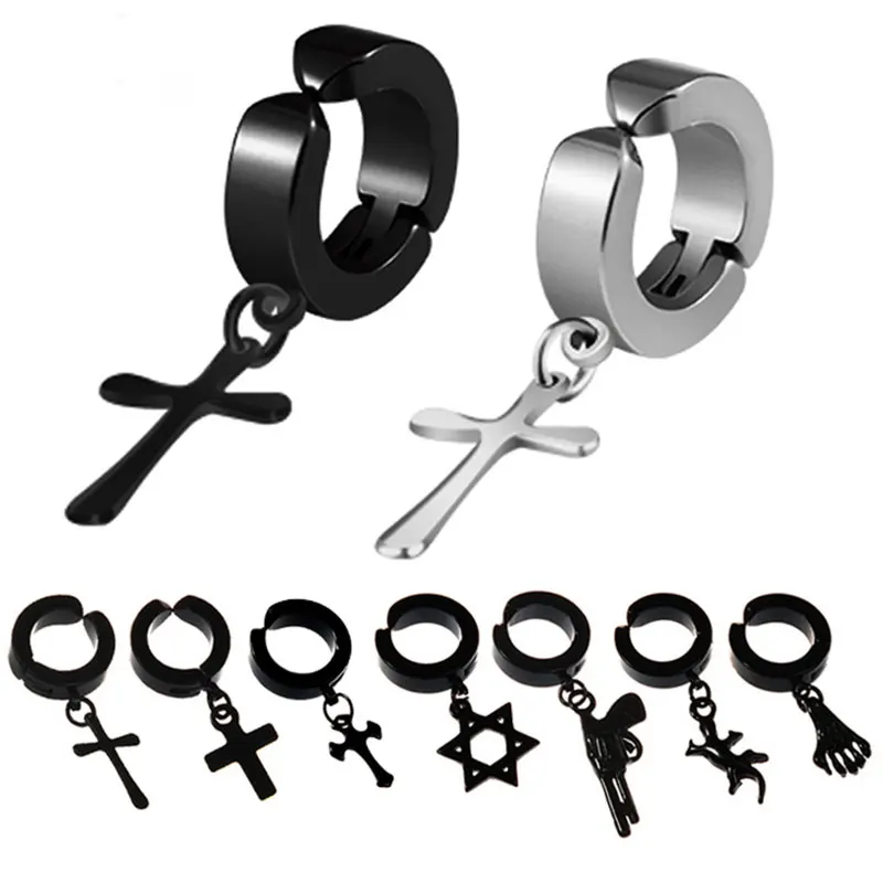1 шт. хип-хоп панк из нержавеющей стали звезда крест кулон клипсы для ушей без пирсинга Серьги