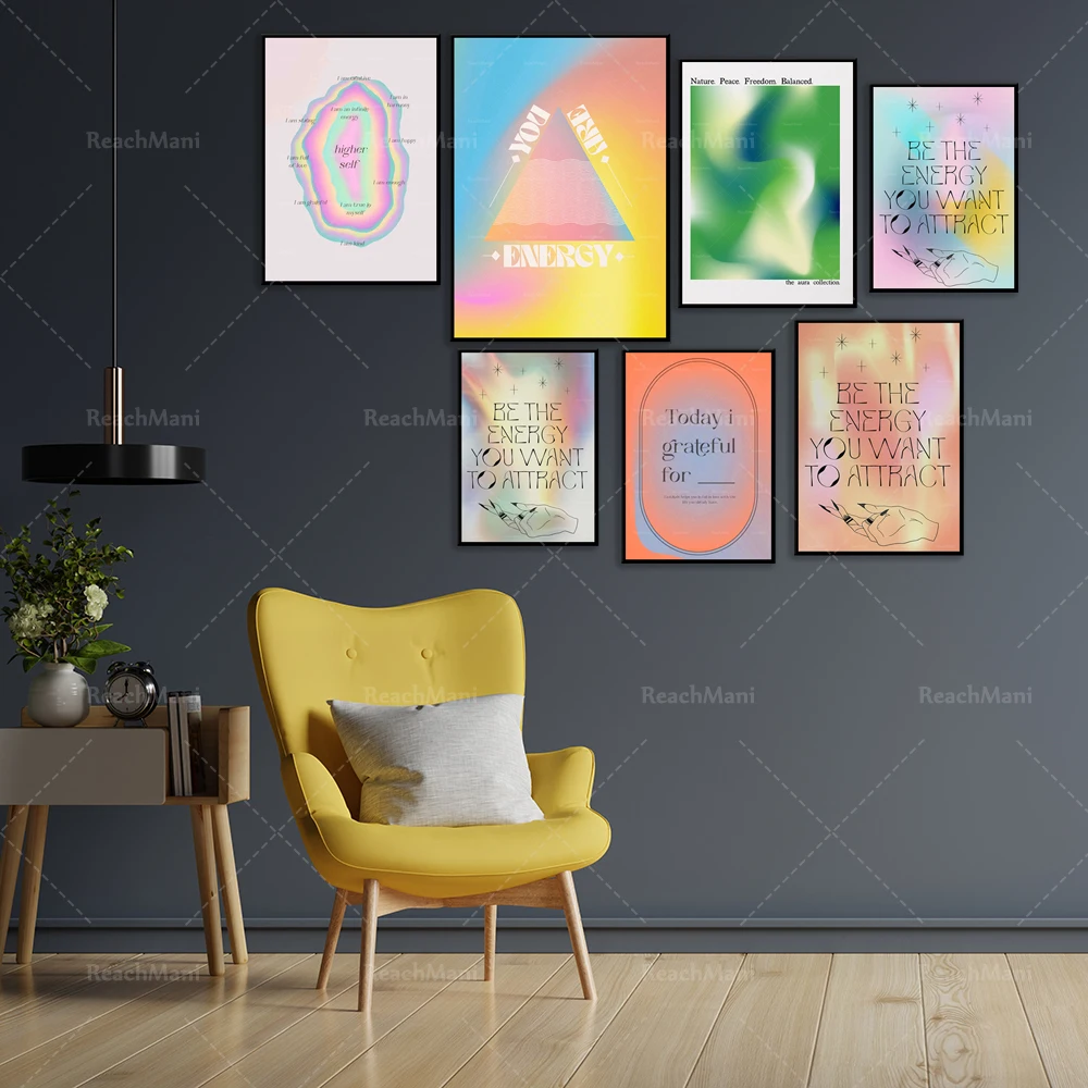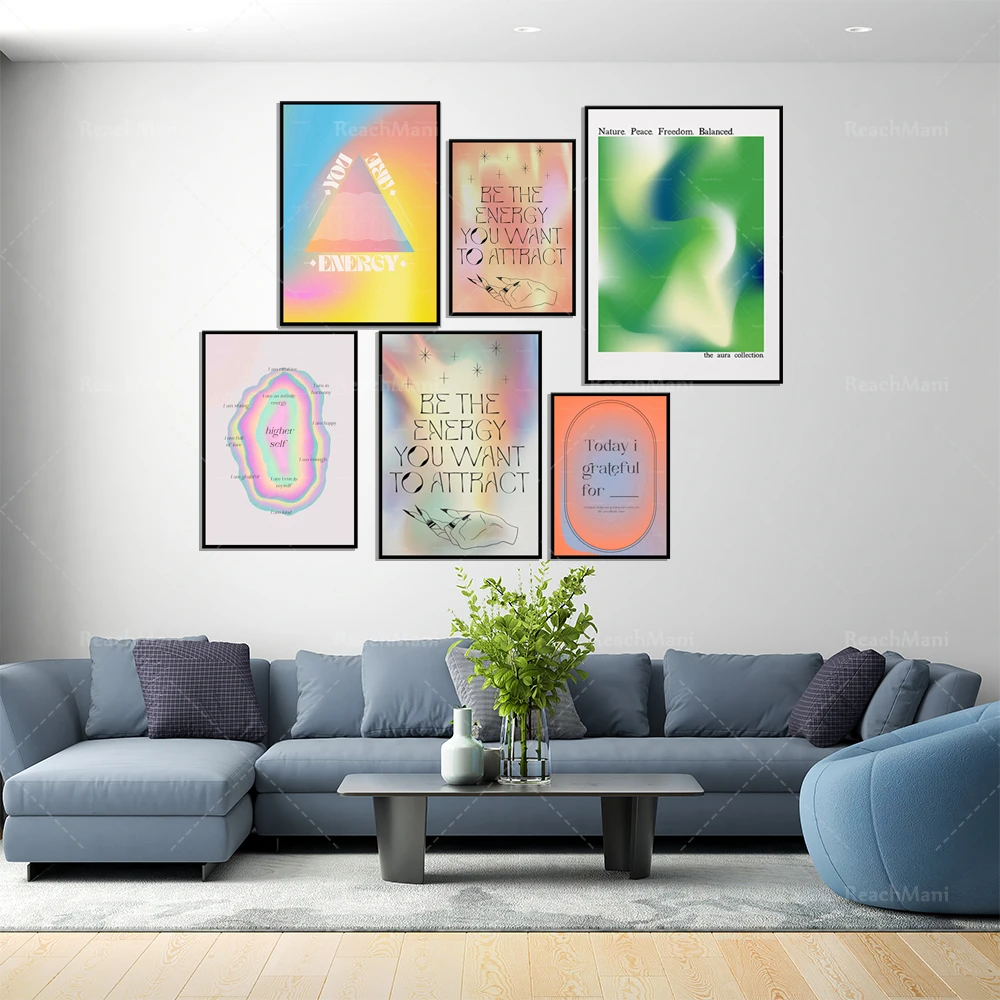 Цветная печать Aura Energy-Персональная энергия, плакат aura, Ретро плакат 70 с градиентом, Тихая Современная абстракция, психоделический плакат de