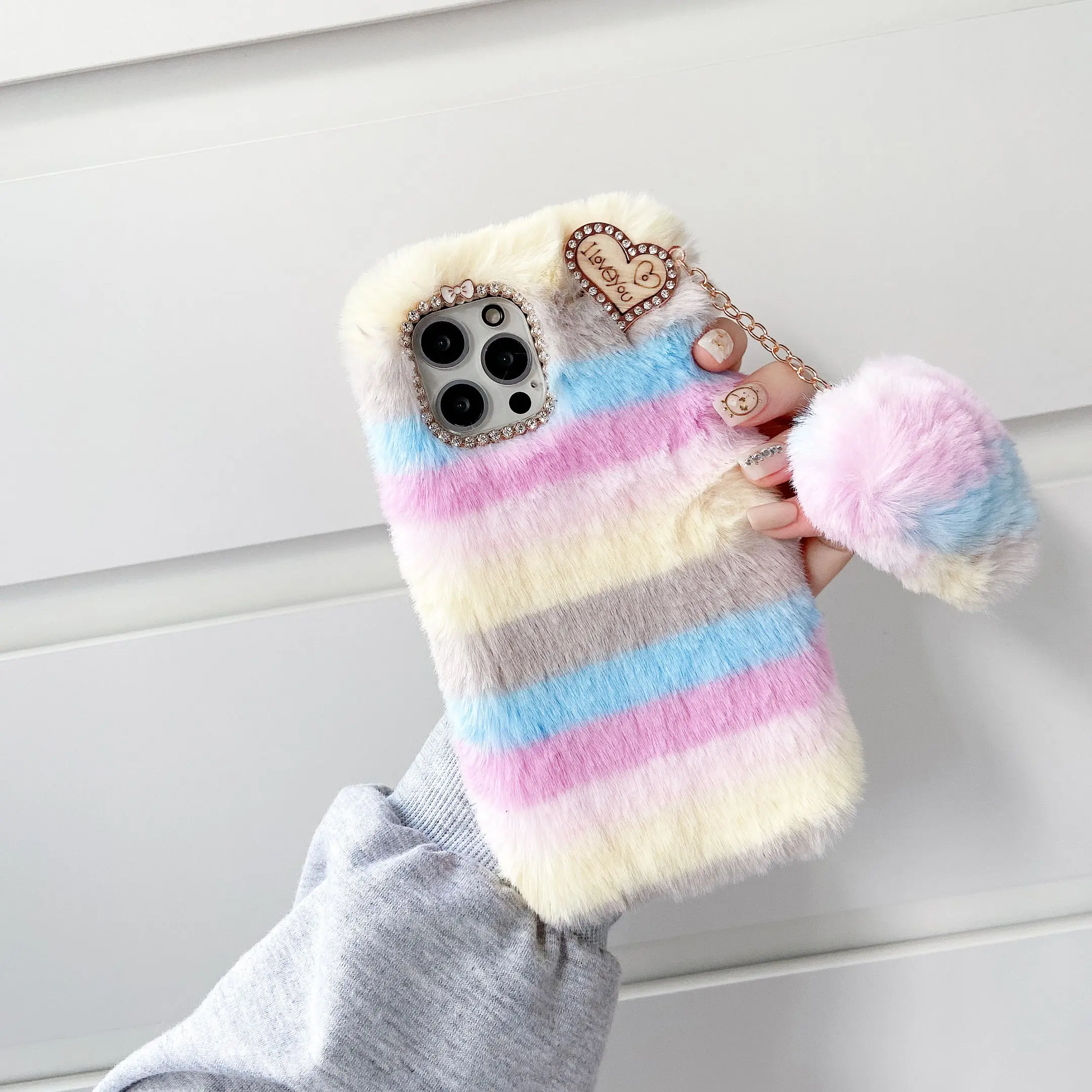 3D милый пушистый плюшевый мягкий меховой Радужный чехол для телефо...