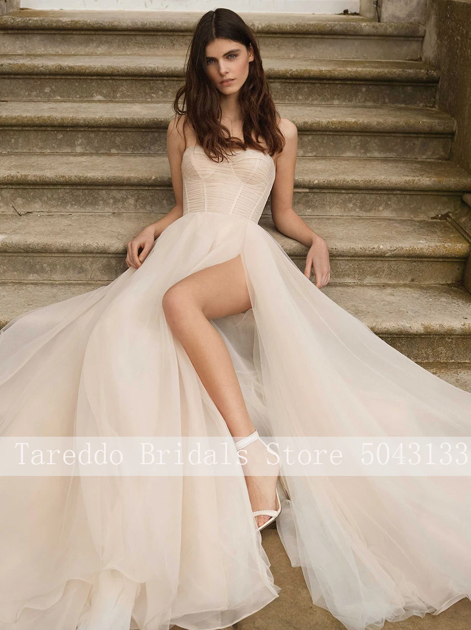 Простые женские свадебные платья а-силуэта 2021, летние пляжные платья невесты из тюля с открытыми плечами в стиле бохо