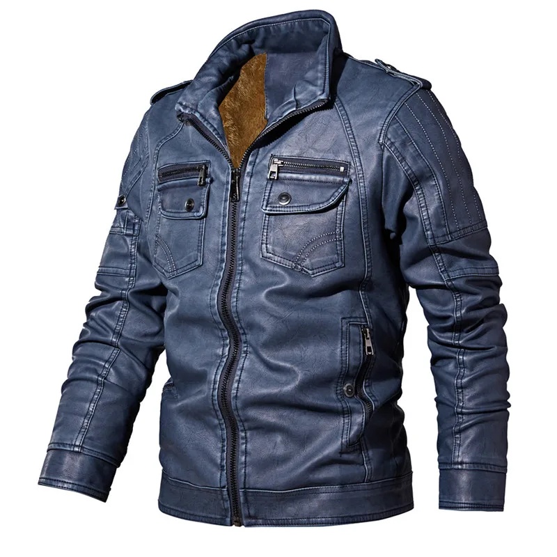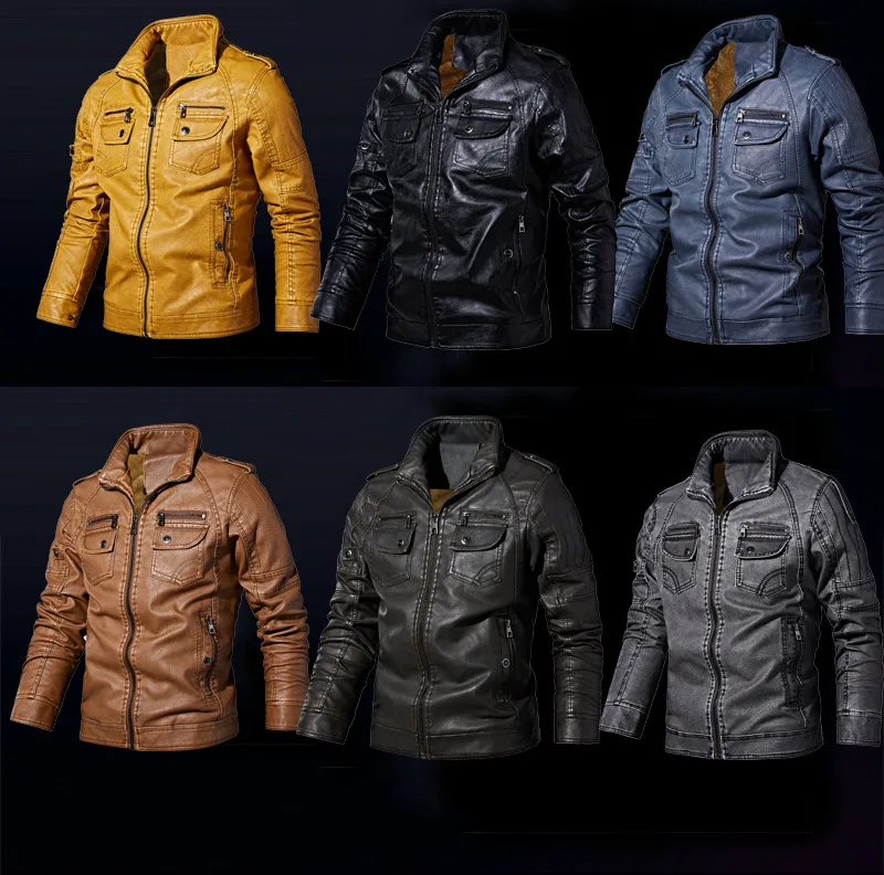 Мужские кожаные куртки, зимняя флисовая Повседневная мотоциклетная ...
