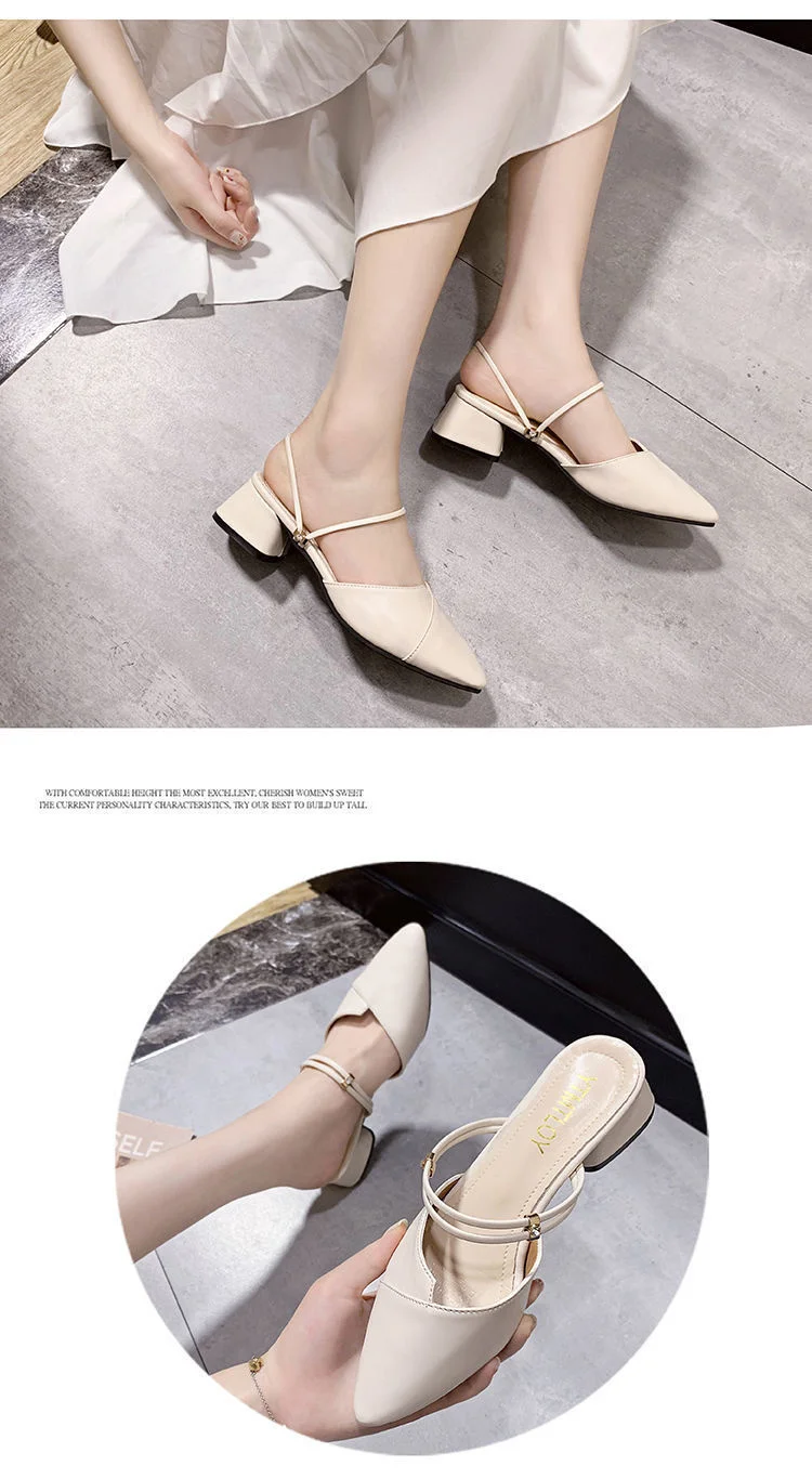 Новинка 2021 года; Сезон весна-лето; Туфли на высоком каблуке; Тонкие туфли с острым носком на толстом каблуке; Босоножки Baotou на среднем каблуке