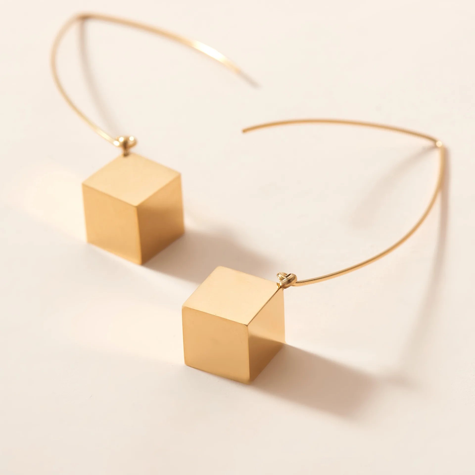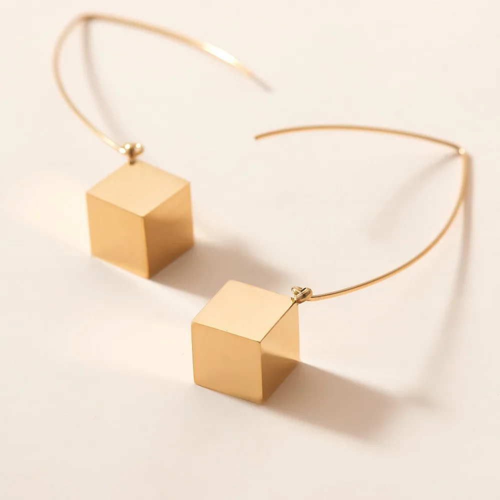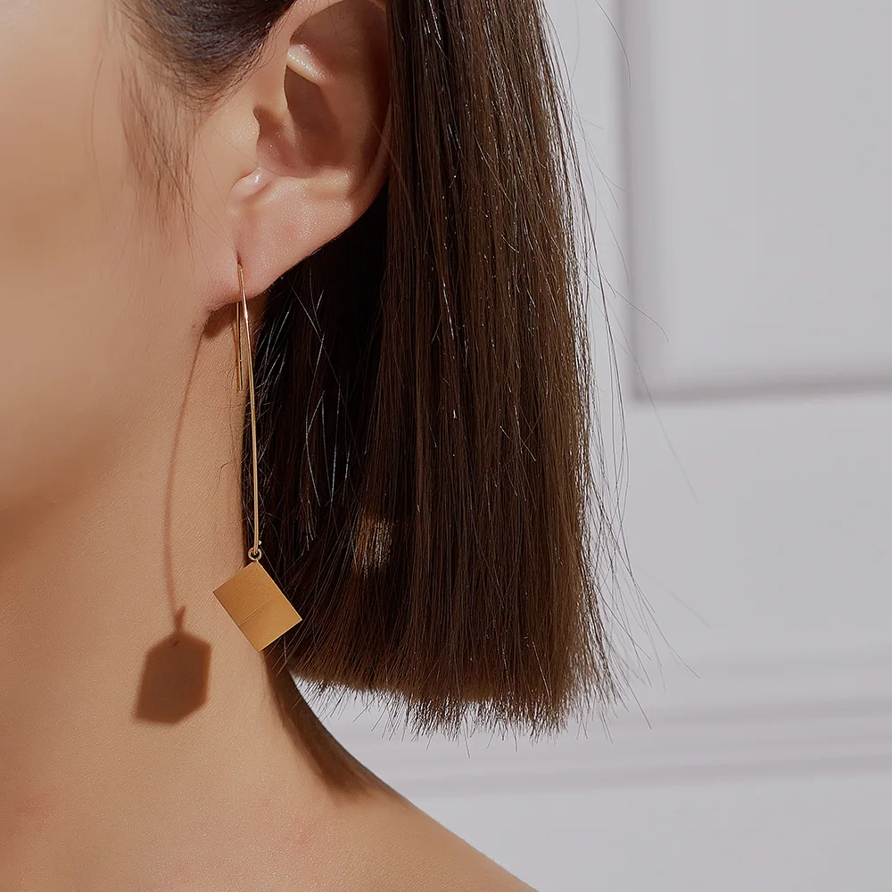 Модные простые серьги в Корейском стиле из нержавеющей стали с золотым покрытием для женщин, модные и Универсальные Длинные украшения для Рубика