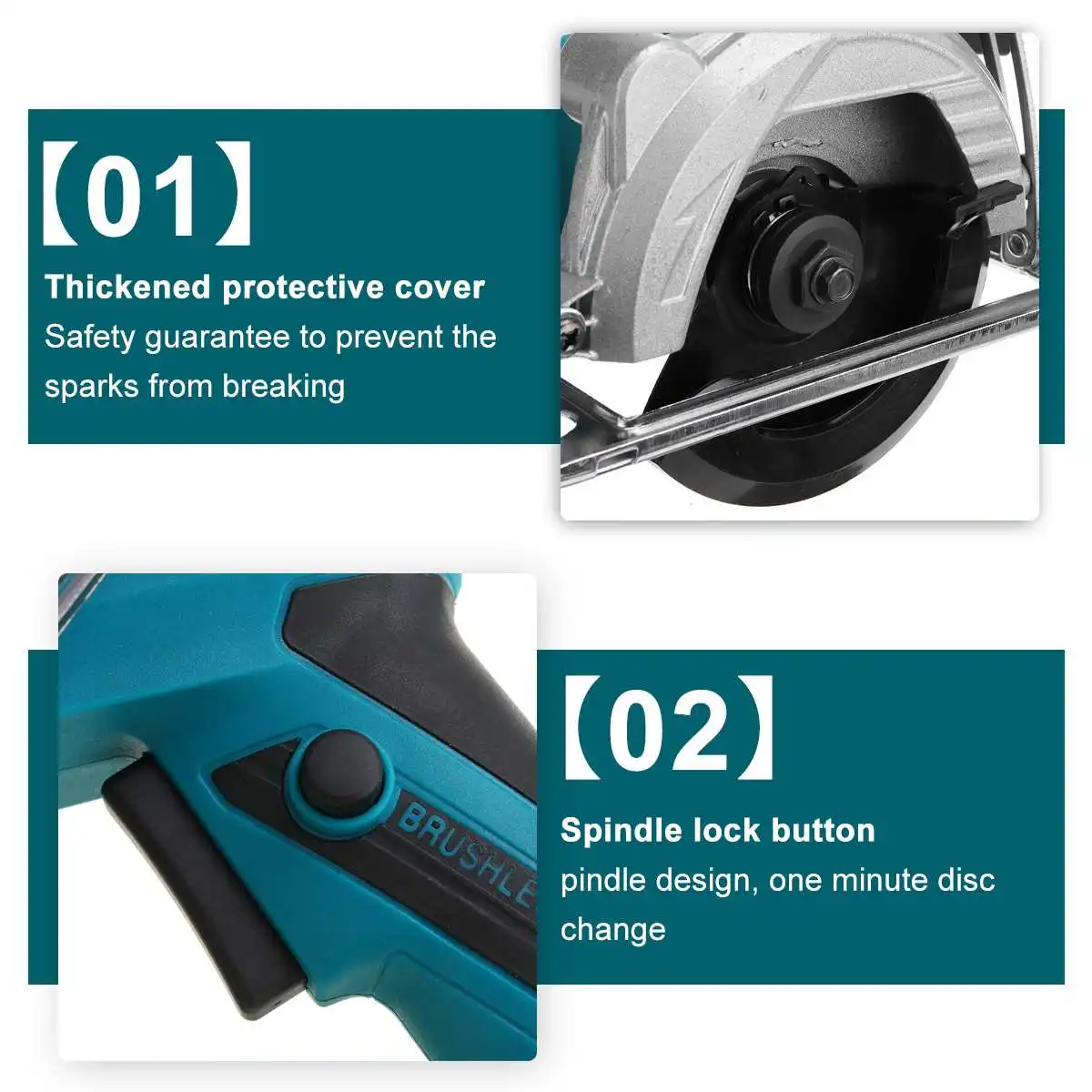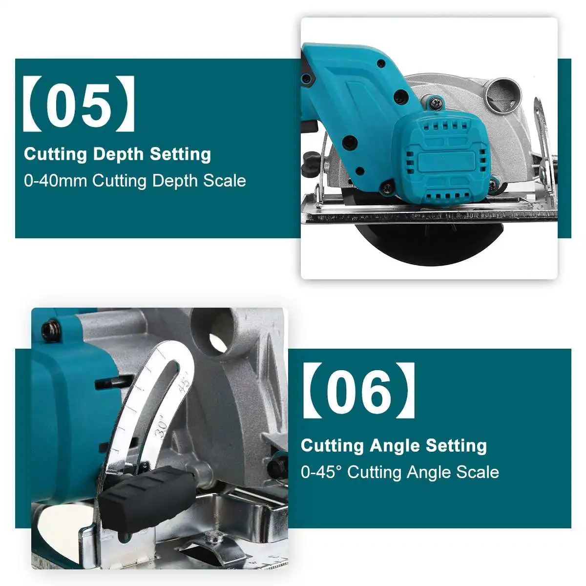 Циркулярная пила, 125 мм, 1800 Вт, бесщеточная, 0- 45 , регулируемая, деревообрабатывающая машина, дерево, для аккумулятора Makita 18 в