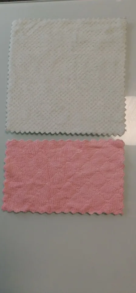 Тряпочки супер по качеству, я такие и хотела, размер отличный, покупала 2 вида на фото сравнение. Впитывают воду очень хорошо, и отжамаются тоже, и все с них отстирывается, должно на долго хватить. Кому то покажутся немного скользкими, это не флопок вам.