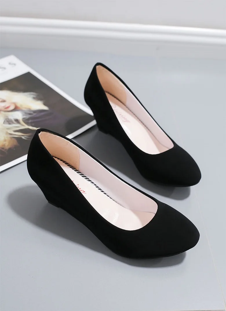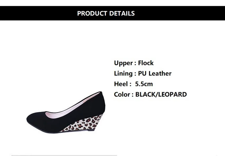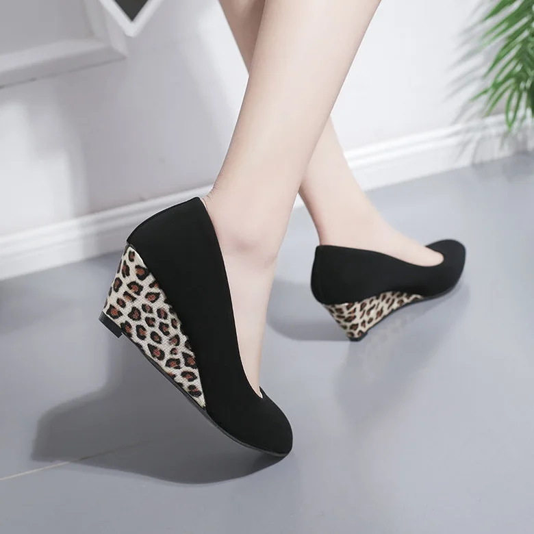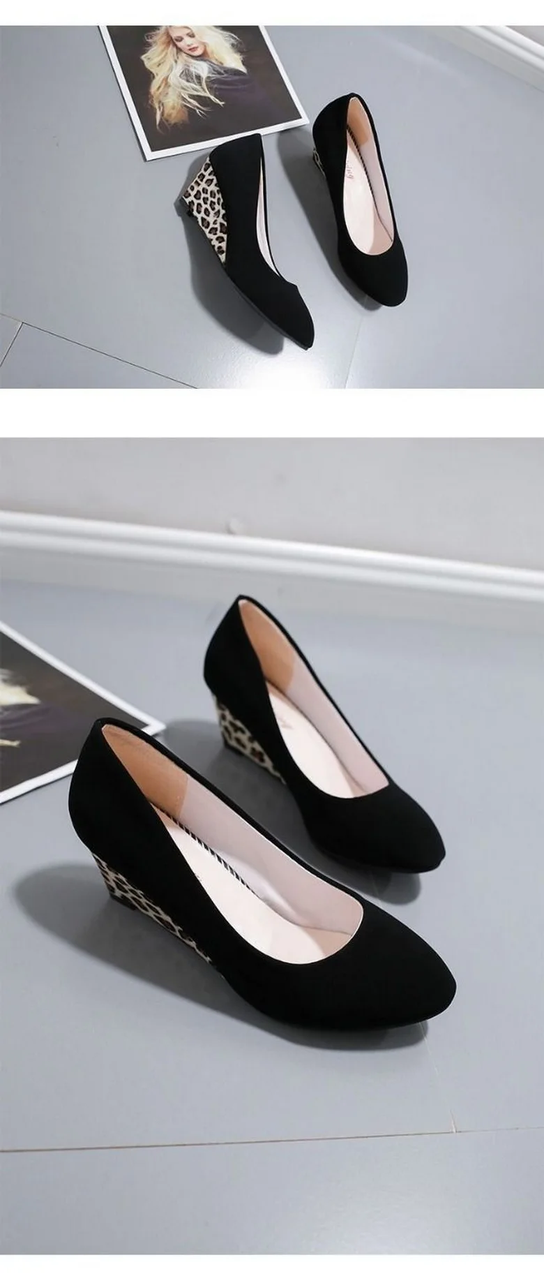 Женские туфли на танкетке с леопардовым принтом, модные туфли на высоком каблуке с круглым носком, офисные повседневные рабочие туфли из флока черного цвета, Прямая поставка, осень 2021