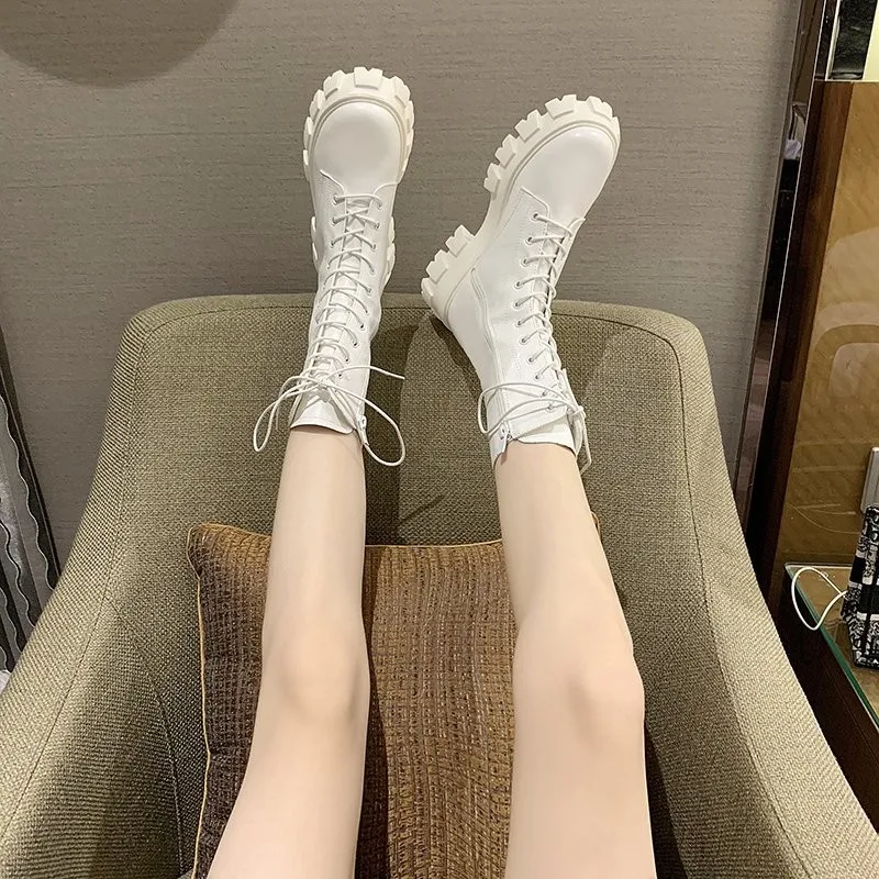 Ботинки женские из мягкой искусственной кожи, на платформе, белые, ...