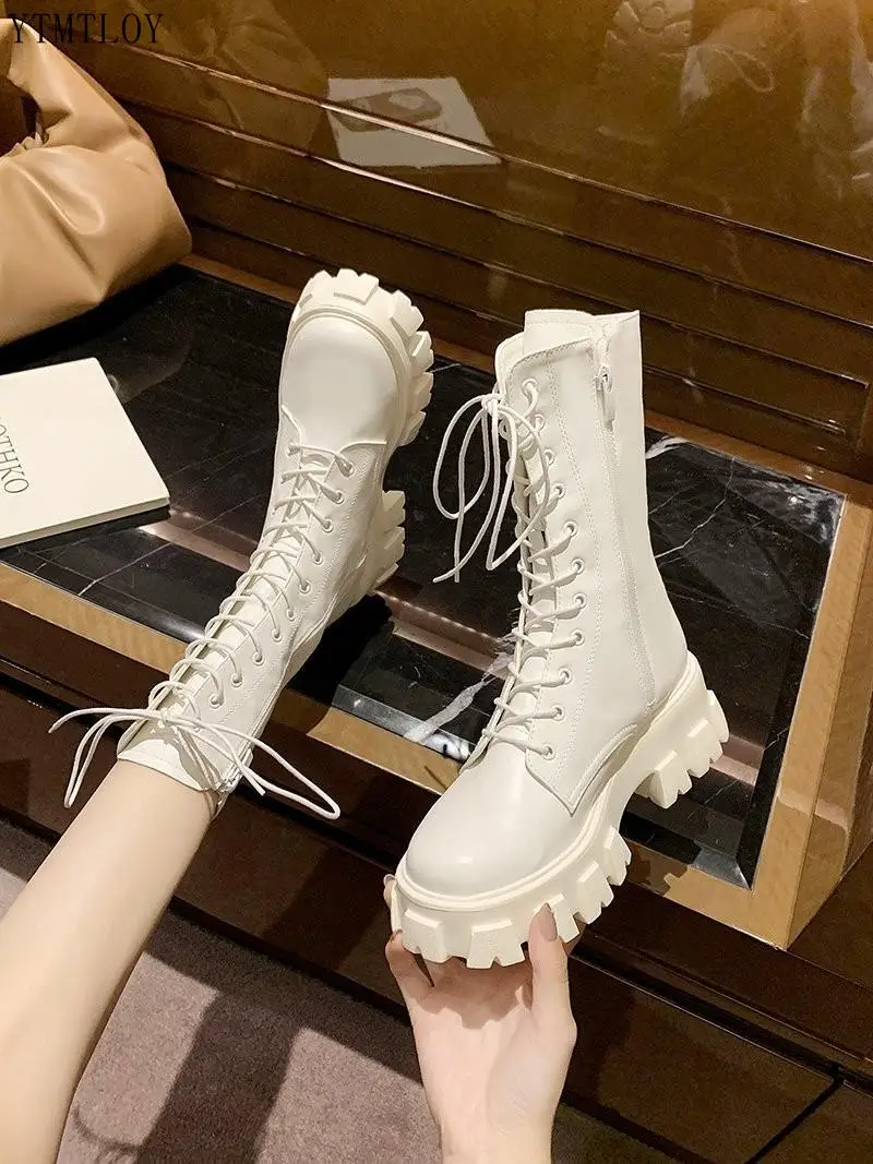 Женские высокие сапоги на толстой платформе, осенние черные сапоги ...