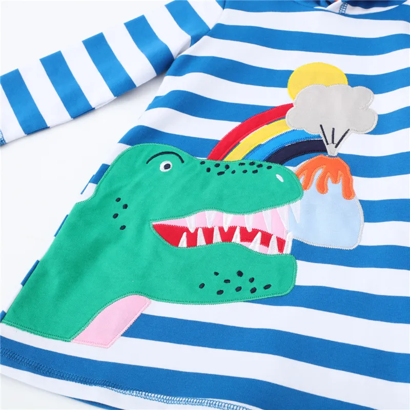 Детское платье с вышивкой в виде динозавров, на осень-зиму